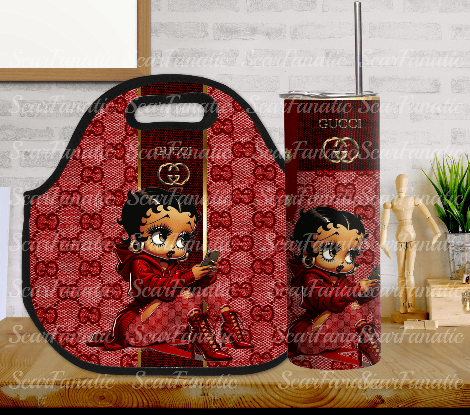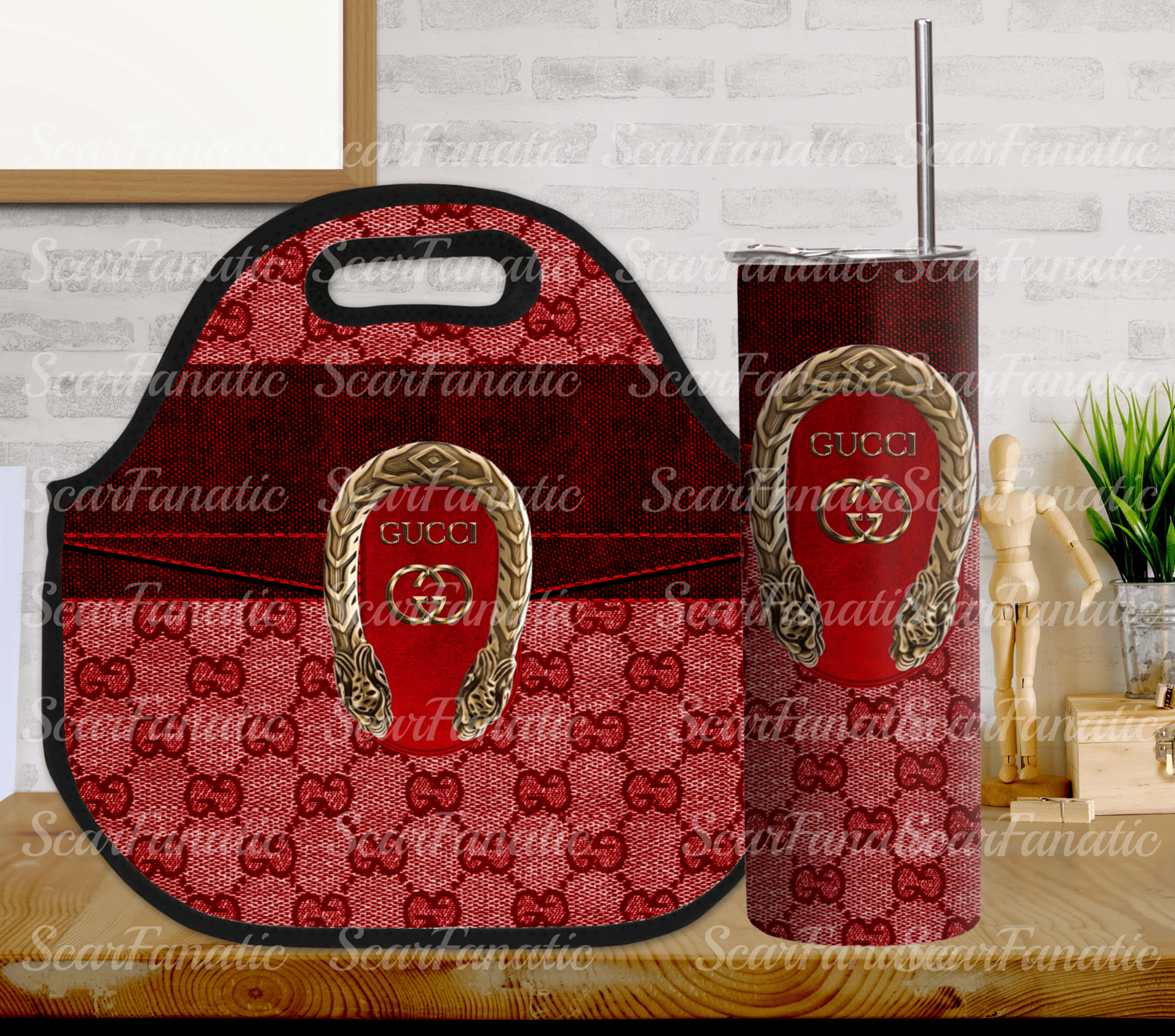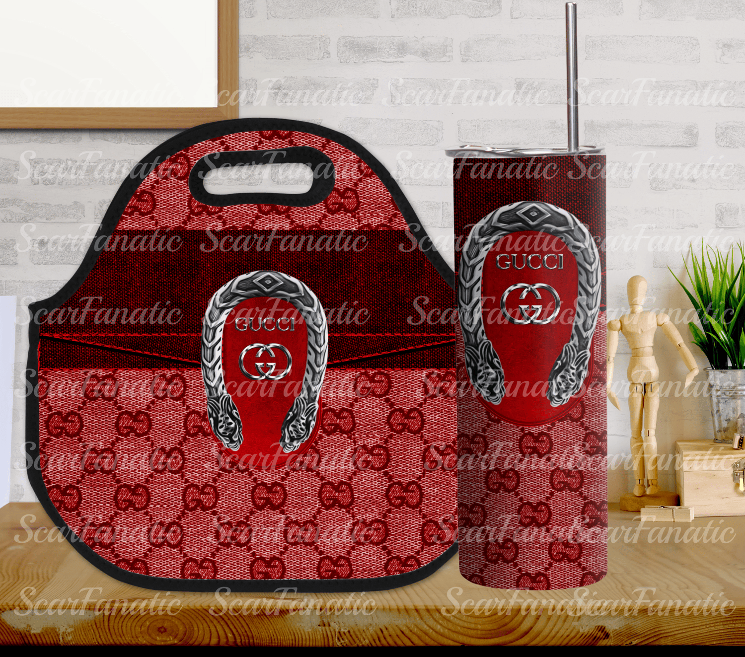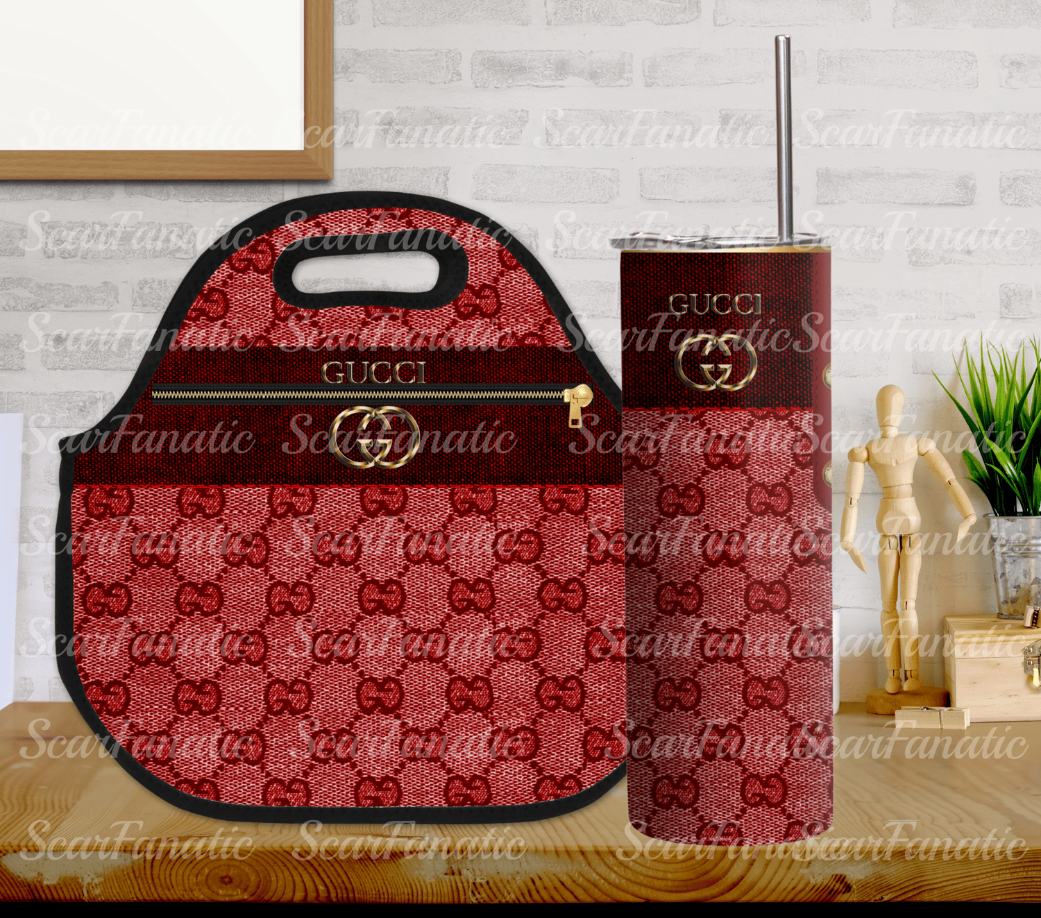 Red GCC Denim Purse Look 20oz Zipper Tumbler and Lunch Tote PNG Design Bundle 4 Designs