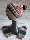 This hat and mittens set are the perfect accessories to wear while dreaming of warmer weather