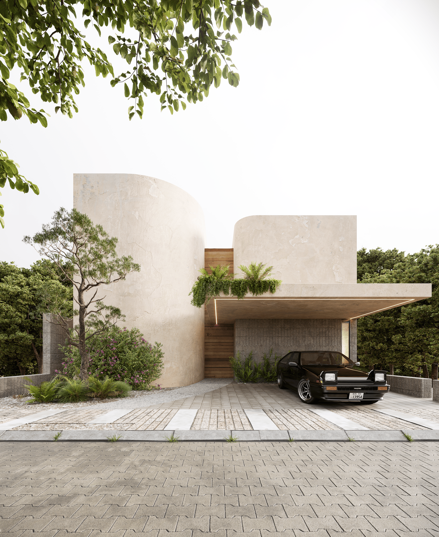 A beautiful architecture concept by MEM Studio, covered with nature vegetation—learn about megascans and maxtree assets, custom trunks and trees.