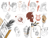 vector pack with creative geometric illustrations of the Olympian Gods and floral elements in line art style.