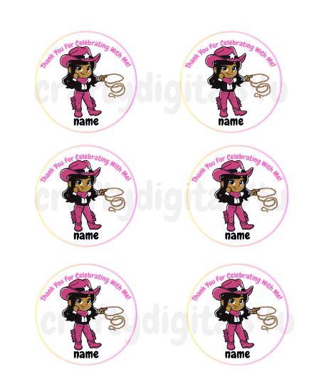 Cowgirl Birthday Thank You Tags Stickers| Printable| Party Favors | Cowgirl Stickers |Personalized