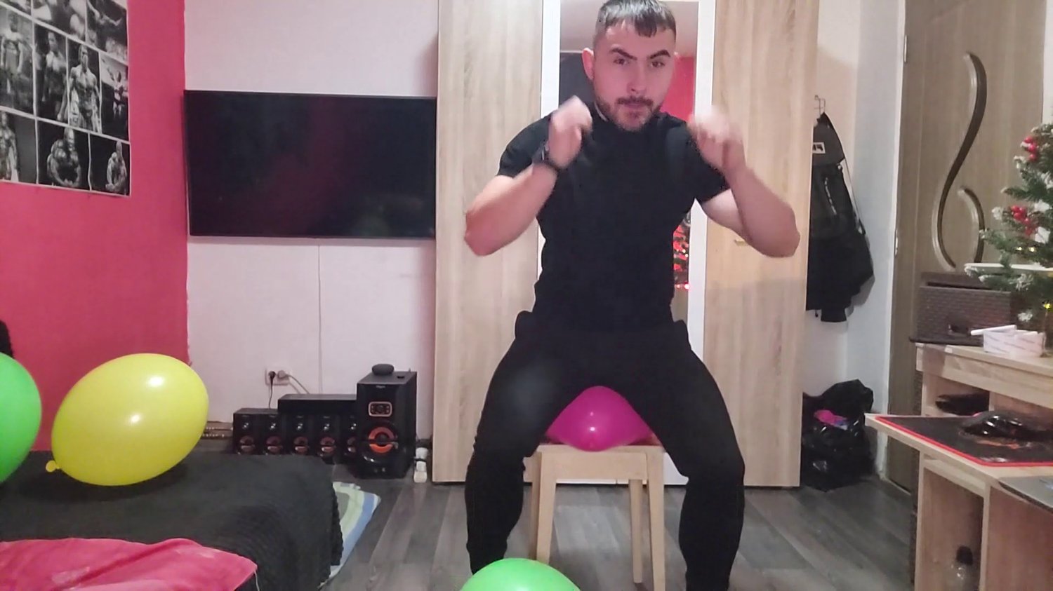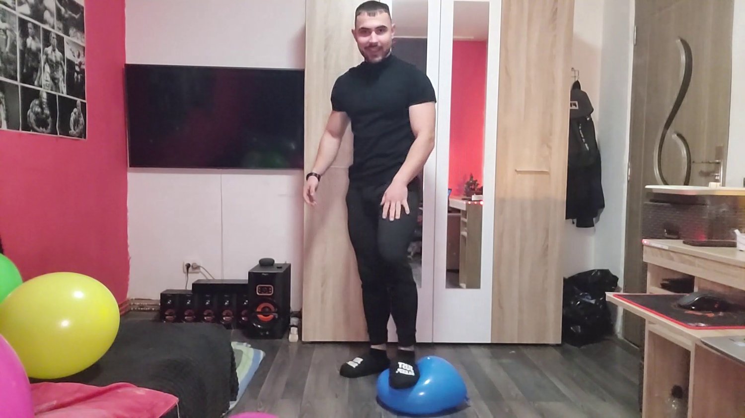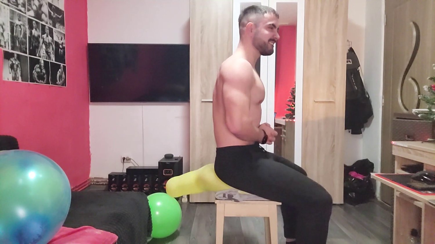 Sexy Elliot asked for more! He loves popping balloons so he decided to show how he destroys them with his feet and butt!