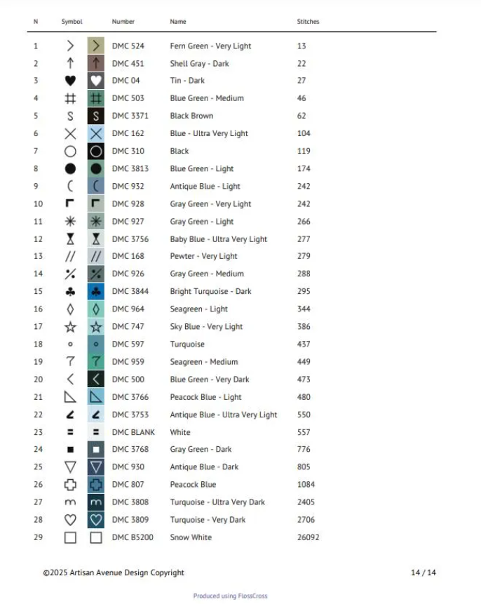 Fabric: Recommended 14-count Aida (or adjust for other fabric preferences)