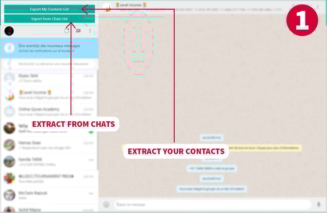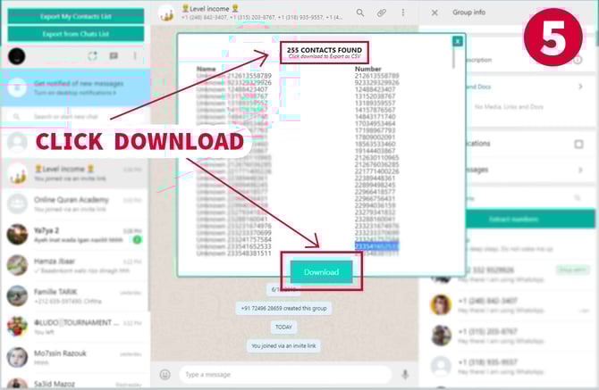 WhatsApp Contacts Extractor is a chrome extension that allows you in a single click to download all numbers include name (if available) from your WhatsApp accounts and save it in an excel sheet (.csv file) and .txt.