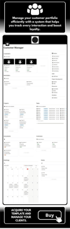 Build stronger and more professional relationships with your clients using the Client Manager template for Notion. This tool is designed to centralize all your key client information and help you organize your work smoothly, efficiently, and productively.