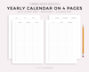 Year Calendar on Four Pages, Printable & Fillable, A4/Letter Size