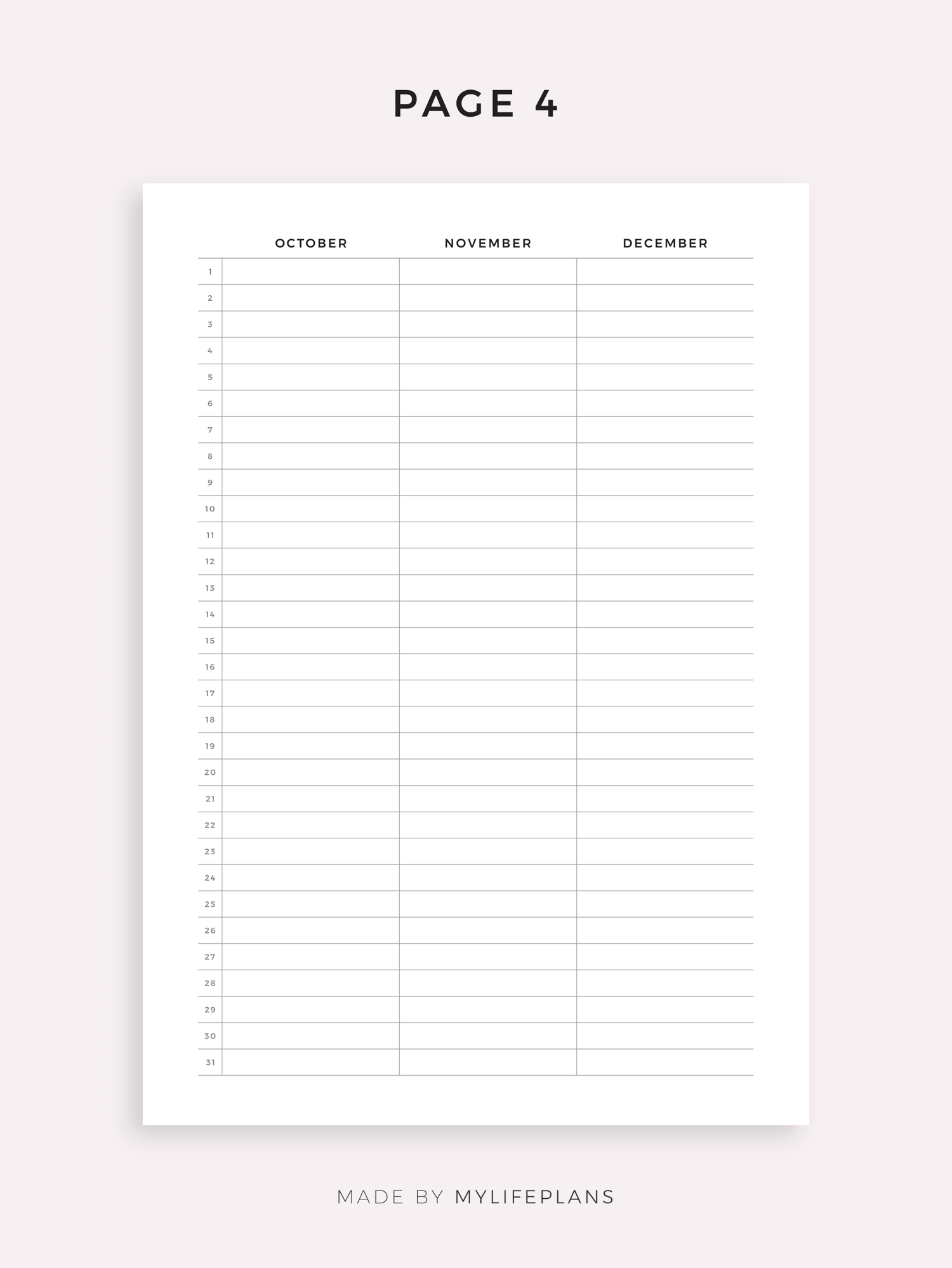 • Includes A4, Letter, and Fillable(A4) planners