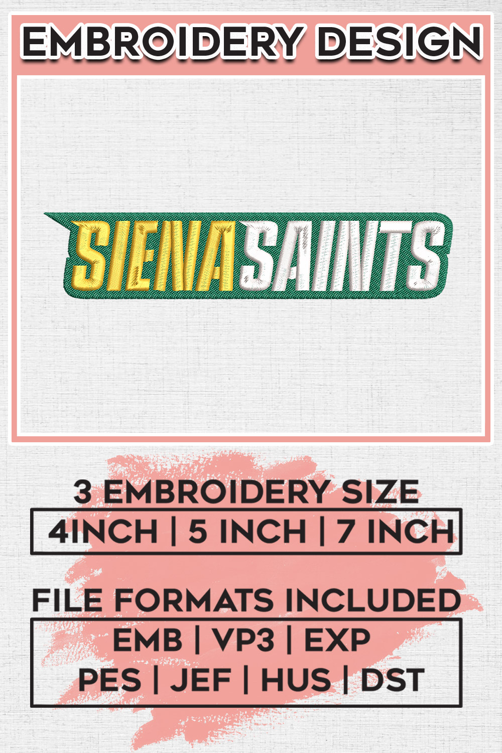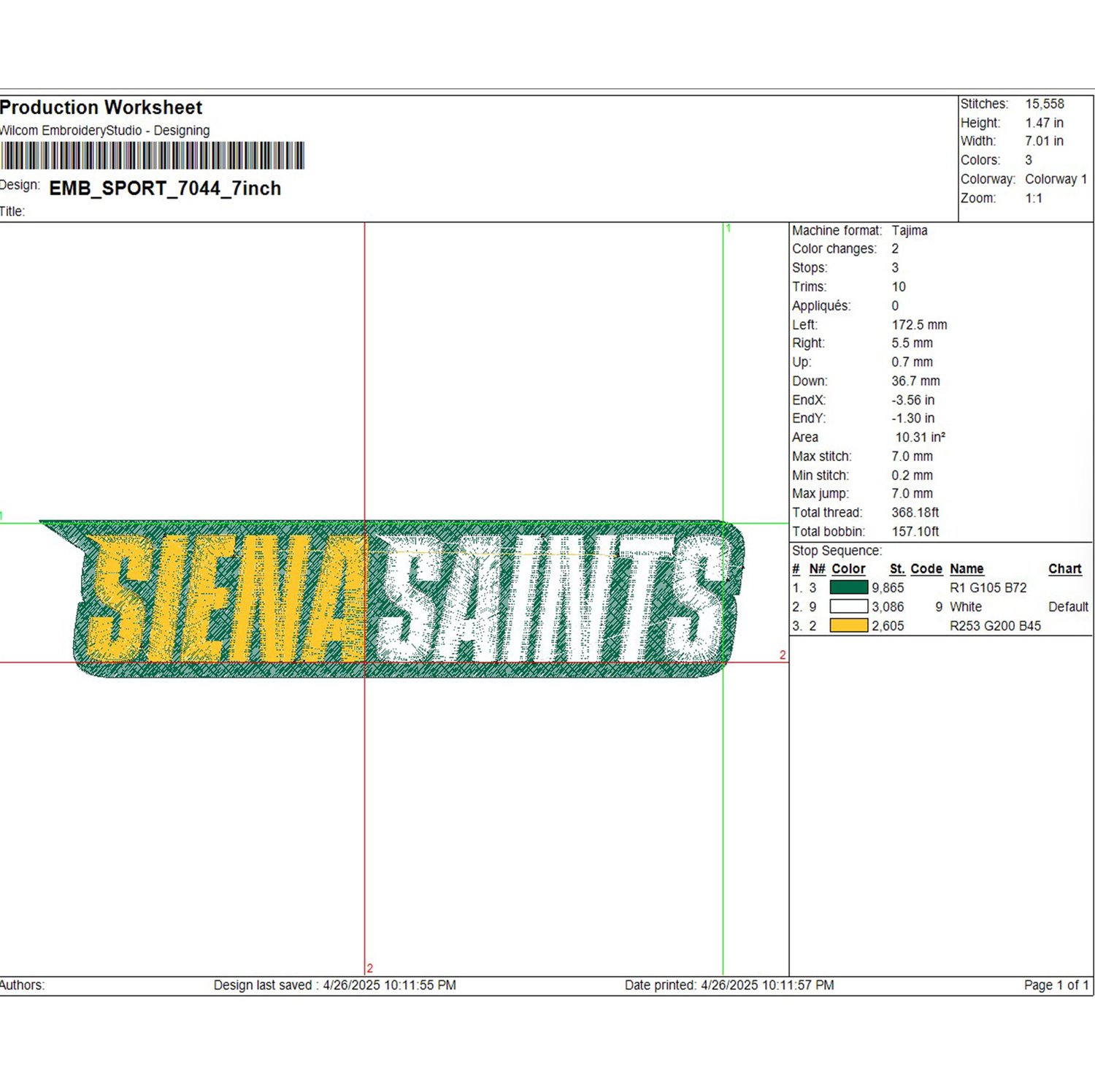 Ncaa Siena Wordmark Logo Embroidery Designs, NCAA Siena Saints Machine Embroidery Files, NCAA Logo embroidery designs, Ncaa Siena Logo, Digital Download