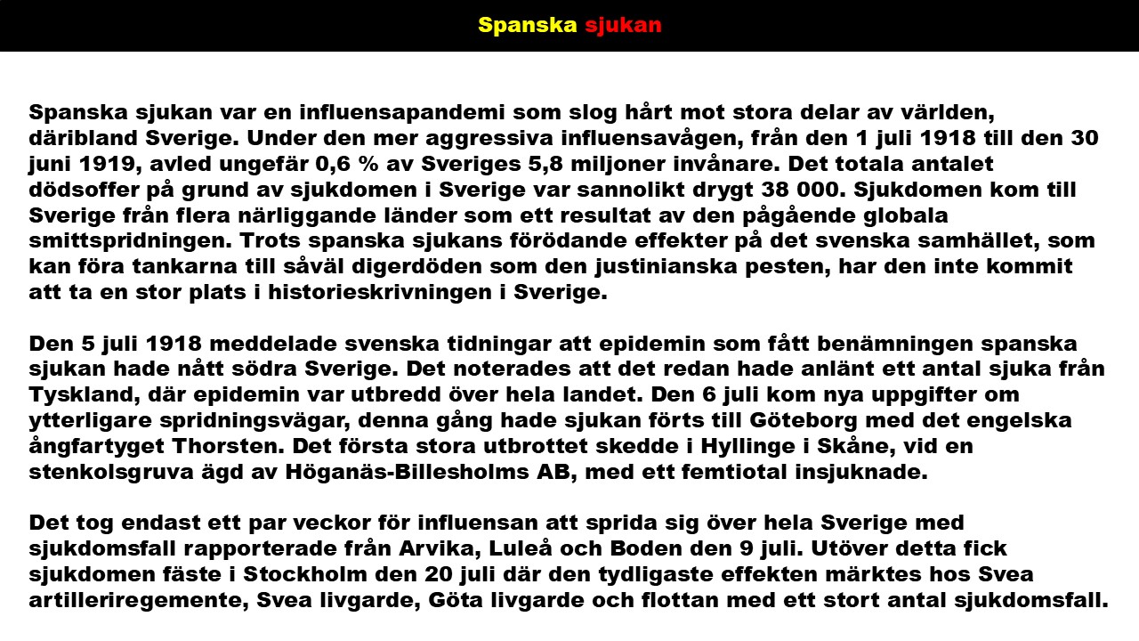 Spanska Sjukan 1918 i Sverige och Globalt (Swedish)