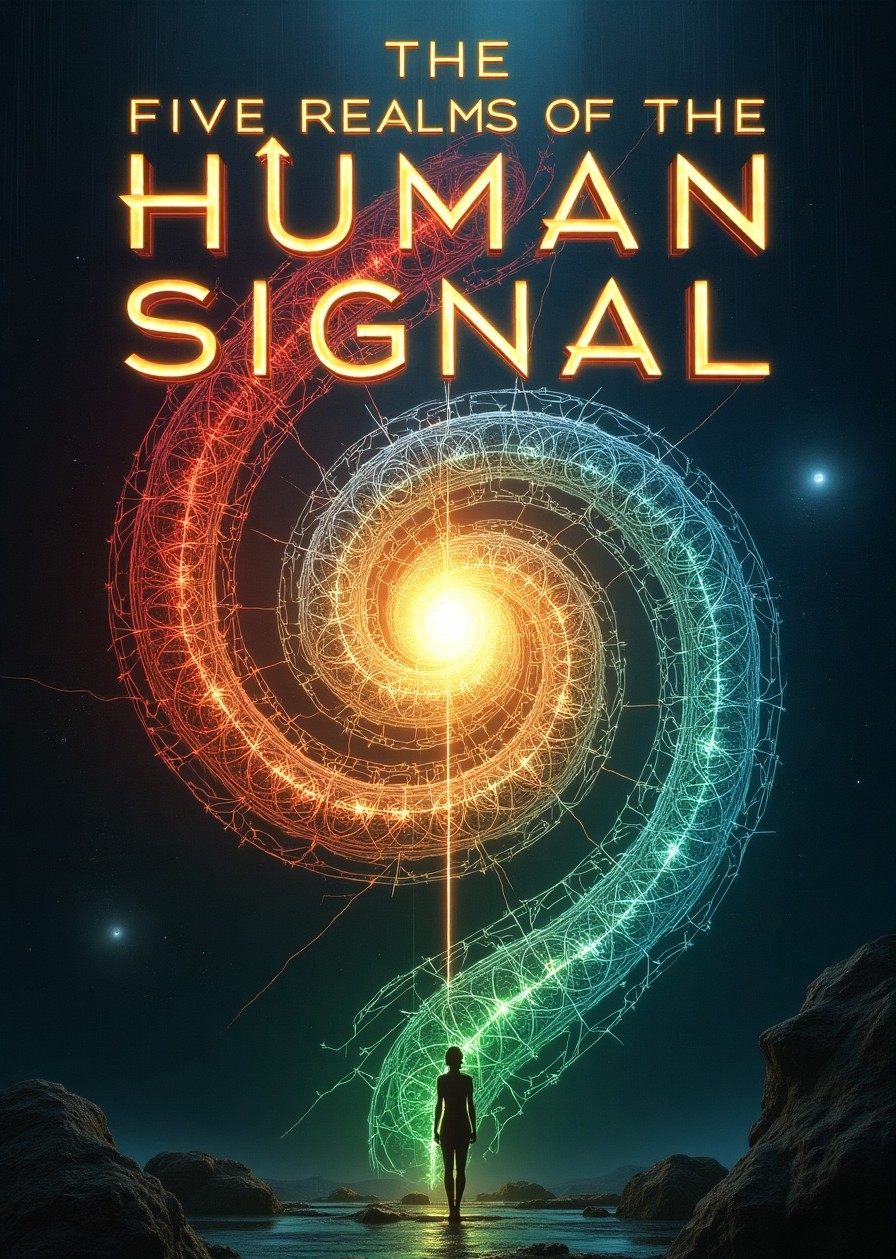 The Five Realms of the Human Signal™ follows Kael, a prodigy Interpreter rebelling against the Guild that monopolizes meaning itself. Spiraling through Desire, Stillness, Meaning, Purpose, and Reconnection, he weaves the Engine of Intent™ to restore humanity’s fractured signal. Tone: mythic, visceral, allegorical. The finale image—the Weave glowing as a pulse shared by all humanity—is designed to be instantly iconic, tattooable, memetic.
