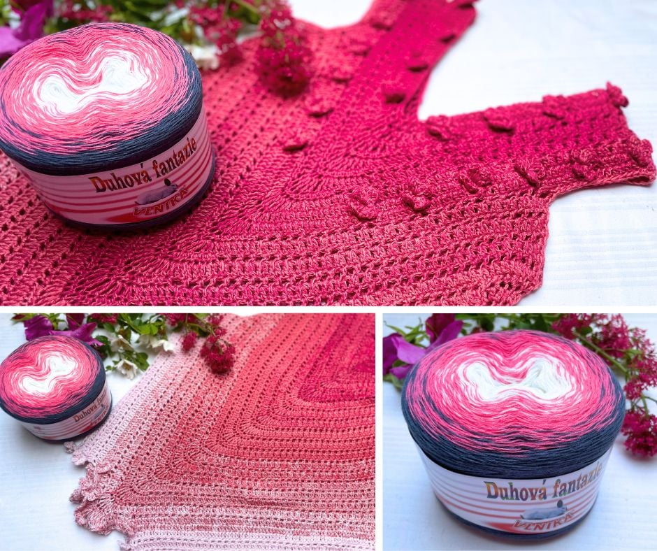 - Plynulé barevné přechody: Návod je navržen tak, aby nádherně prezentoval měnící se barvy příze "Duhová fantazie" a zdůraznil jejich jedinečný tok.