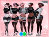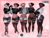 - Glasses, Hat, Garter, Choker, Rings, Waist chains, Panties, Shoes