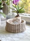 As knitters we always are on the hunt for another bag for all of our knitted projects. This pattern checks all the boxes, a fun knit that becomes your next project bag. This design is just right for those 2 skein projects on the go, or you can fold the top of the bag inward and create a knitted basket perfect for your work in progress.
