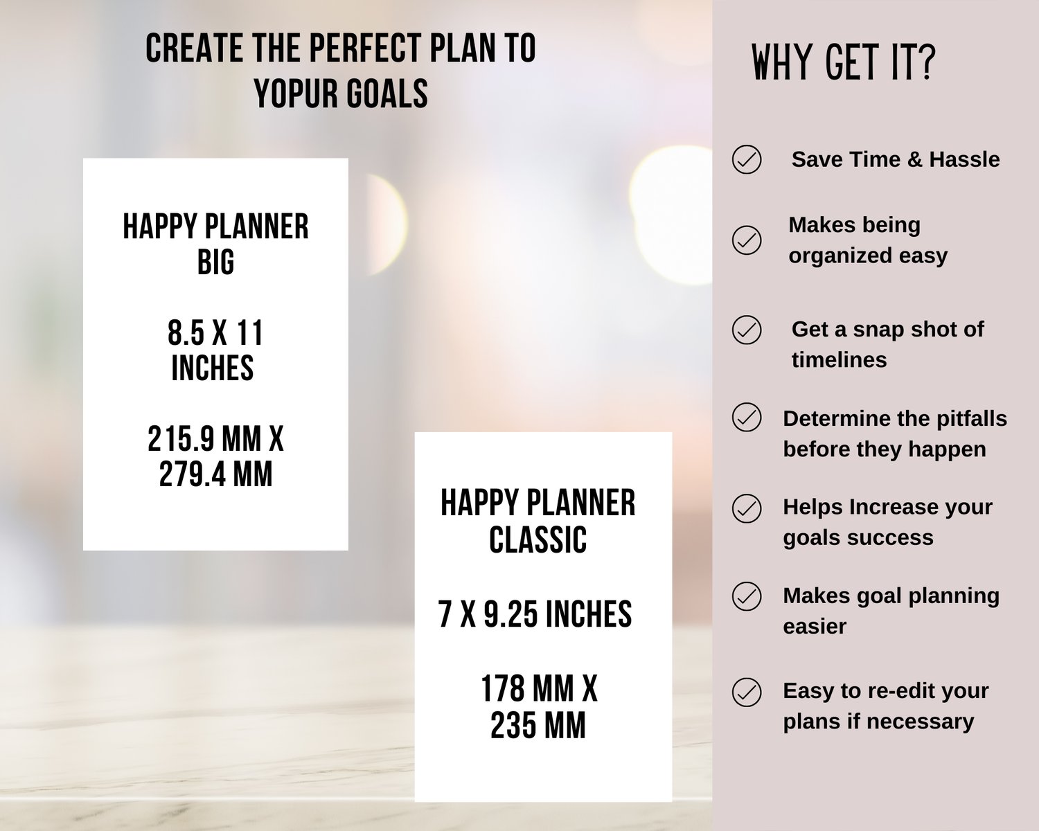 - Sizes: Happy Planner BIG (8.5x11") and Classic (7x9.25")
