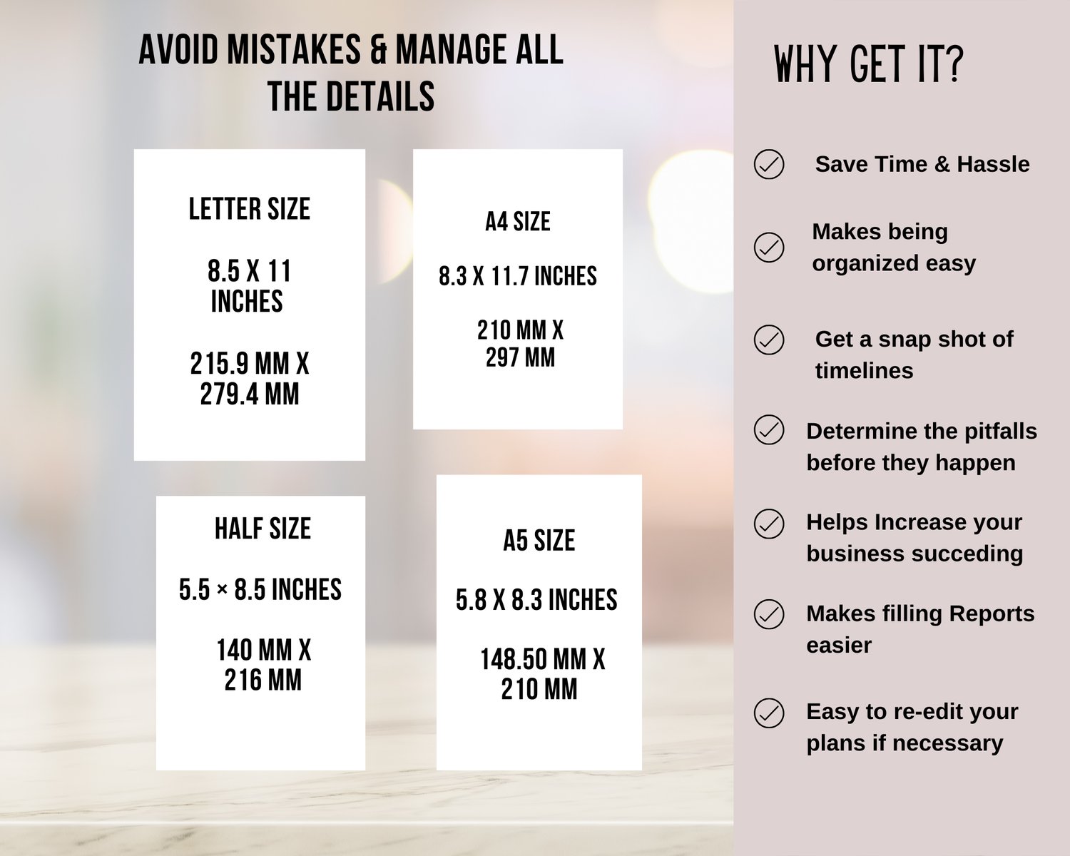 This is an undated and reusable planner. Print as many copies as you need to keep your projects and goals on track!