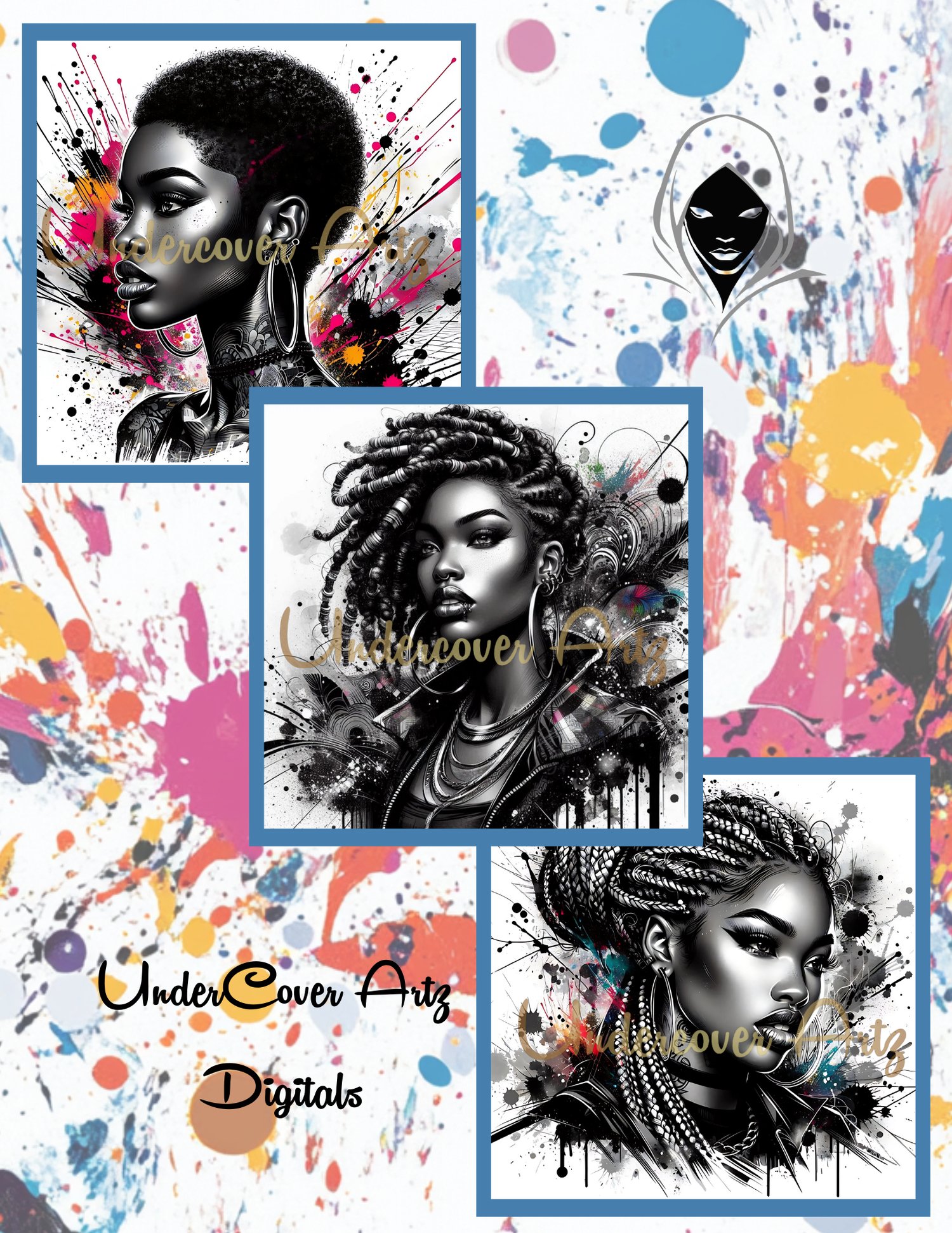 Celebrate the beauty of Black and White with this exquisite Afrocentric PNG Bundle. This curated collection of 15 high-resolution images showcases bold and stylish hairstyles, celebrating culture, individuality, and timeless elegance. Perfect for digital art, print projects, and creative expression.