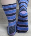 Yarn: Fingering weight; actual yarn usage will depend on size made and length of foot, though most people will be able to get a pair out of one 3.5 oz./100 g skein of sock yarn