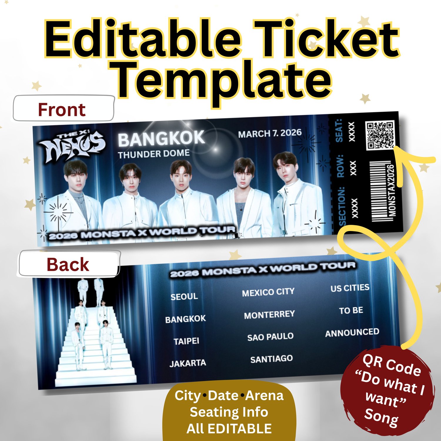 Editable MONSTA X Concert Ticket Template | The X: Nexus World Tour | Fan-Made Digital Download