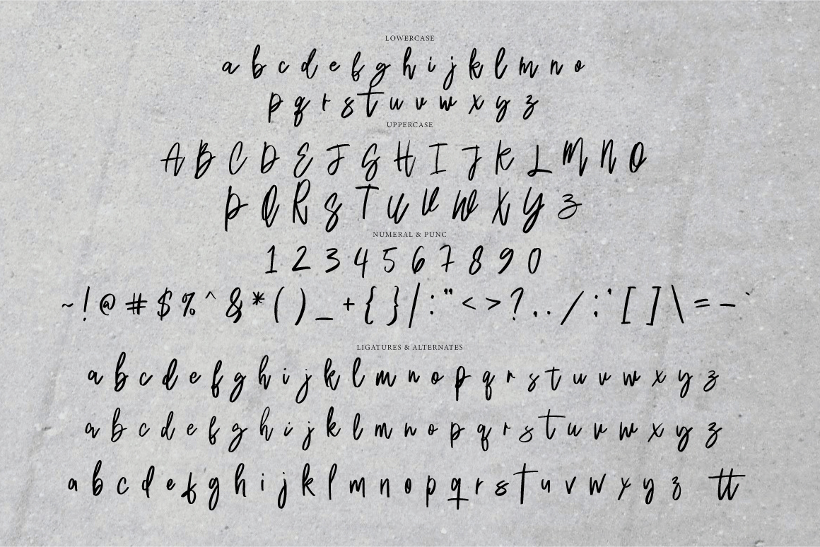 If you don’t have a program that supports OpenType features such as Adobe Illustrator and CorelDraw X Versions, you can access all the alternate glyphs using Font Book (Mac) or Character Map (Windows).