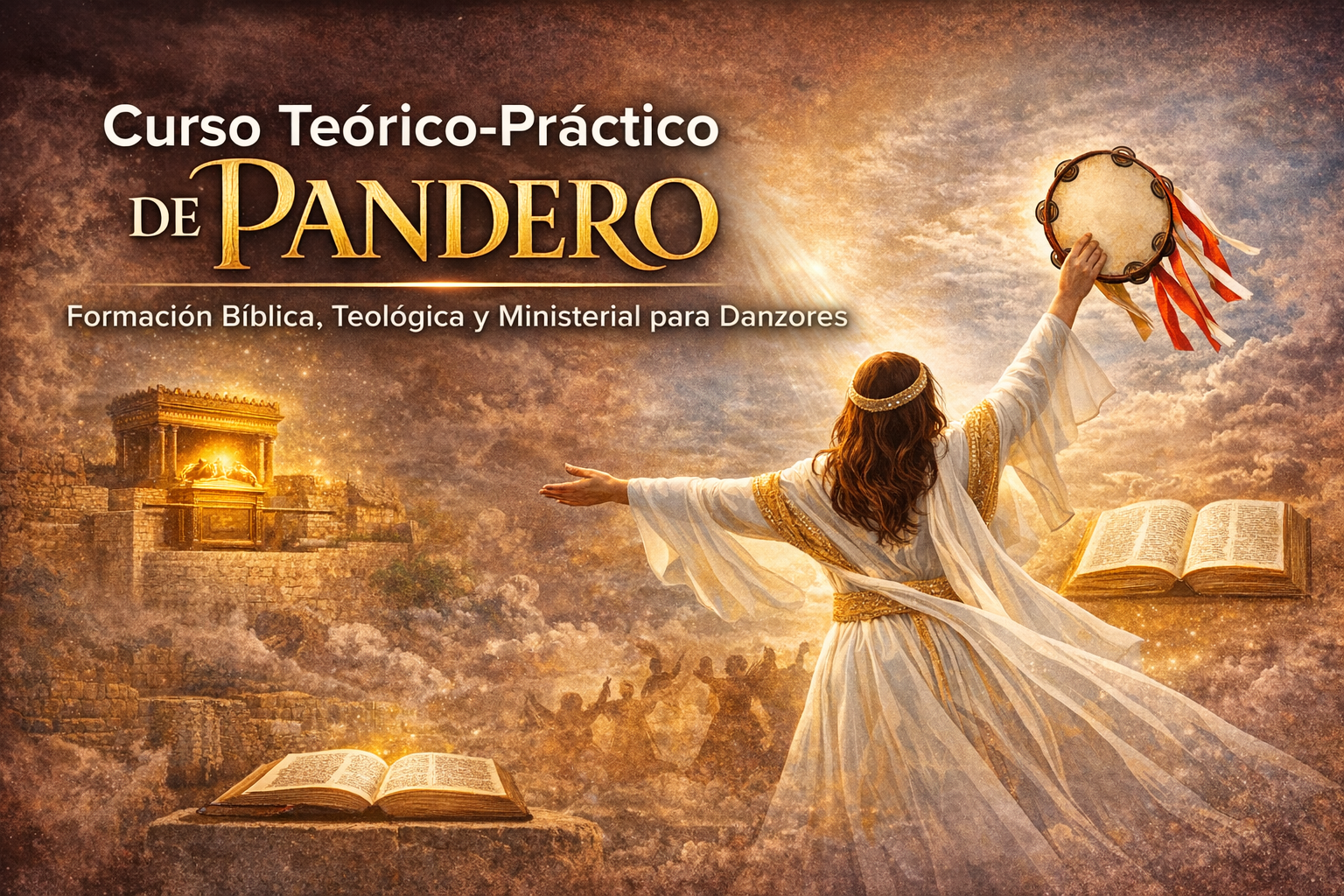 El material del curso incluye 30 capítulos de formación, organizados en ocho secciones principales que abordan desde la base bíblica del pandero hasta la formación espiritual del danzor.