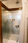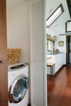 Through a bi-fold door at the end of the kitchen, you'll find a thoughtfully designed bathroom with enough space for a toilet (standard, compost, or incinerating), and a 3-square-foot shower. If desired, there is room to install a small sink, catering to your personal preferences and needs.