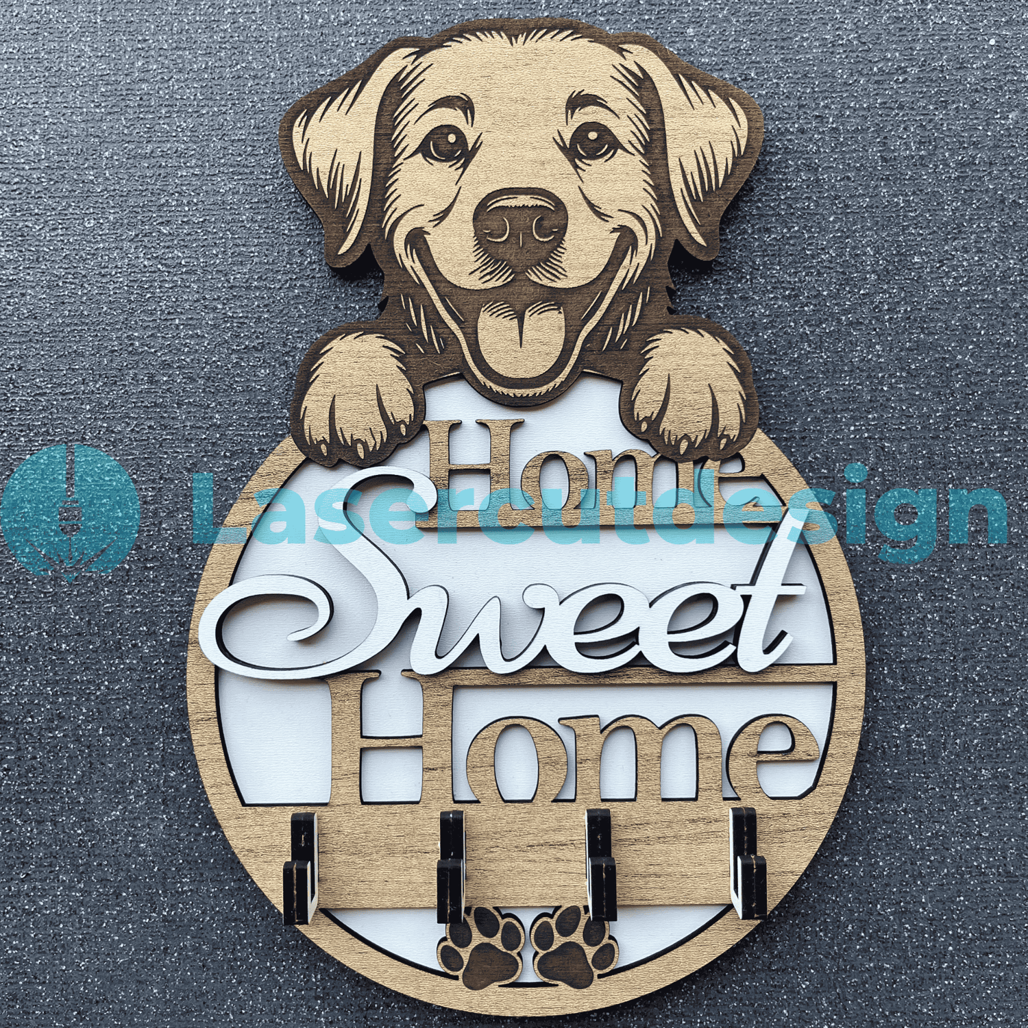 Dog Wall Key Holder SVG – Home Sweet Home Laser Cut File – Pet Decor DXF Ai for 3mm 4mm Wood