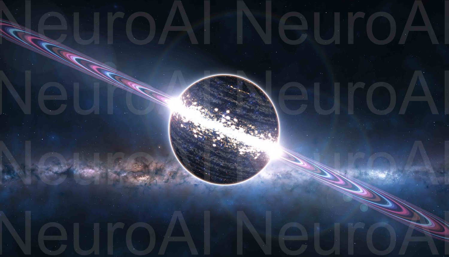 Stunning ringed planet in deep outer space galaxy