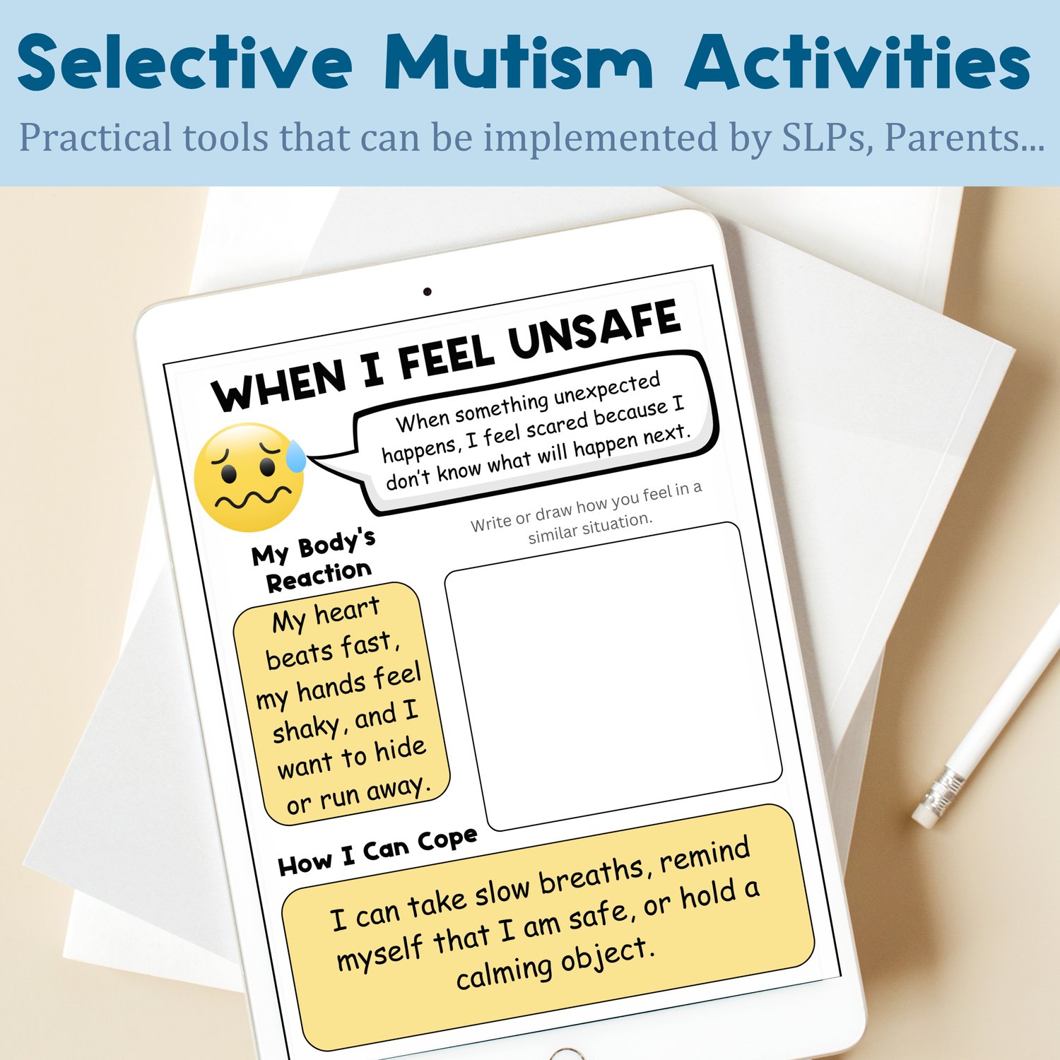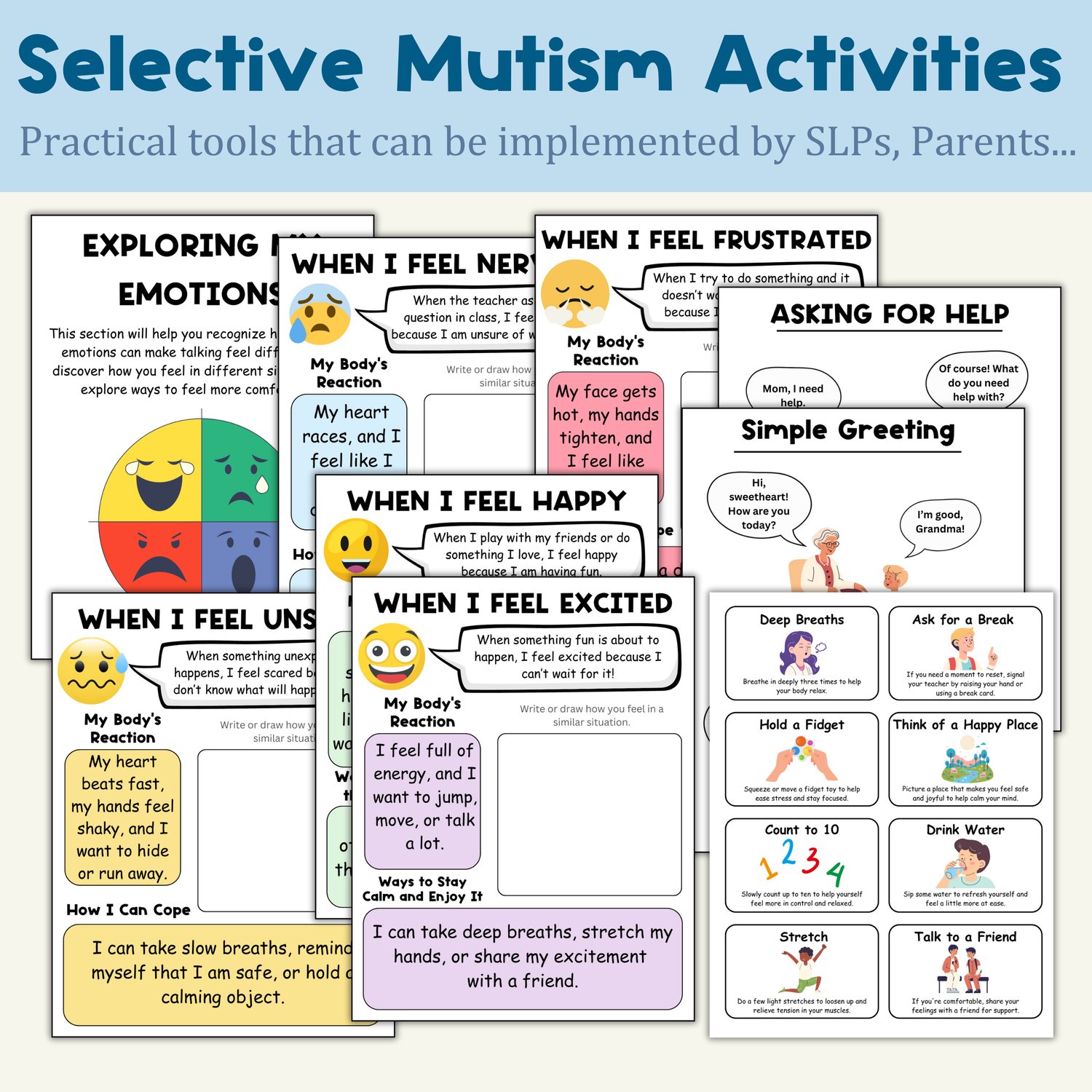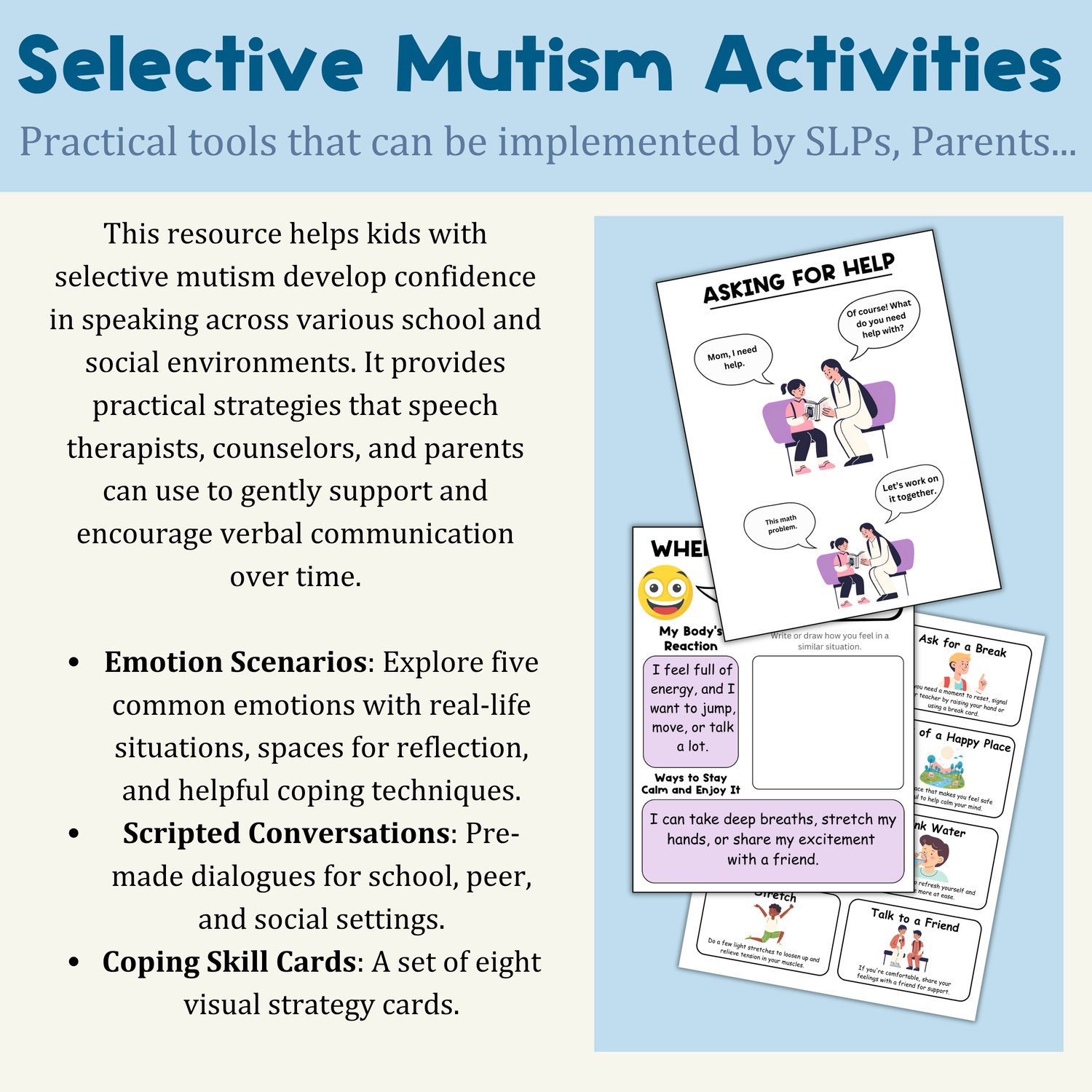 Selective Mutism Activities Speech Therapy for Kids, Coping Cards, Worksheets...