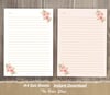 4 Printable Floral Sheets, Lined Paper, Planner Pages, Greeting Card, Invitation Card, Paper Craft, Ephemera, Scrapbook, handwriting, Notes