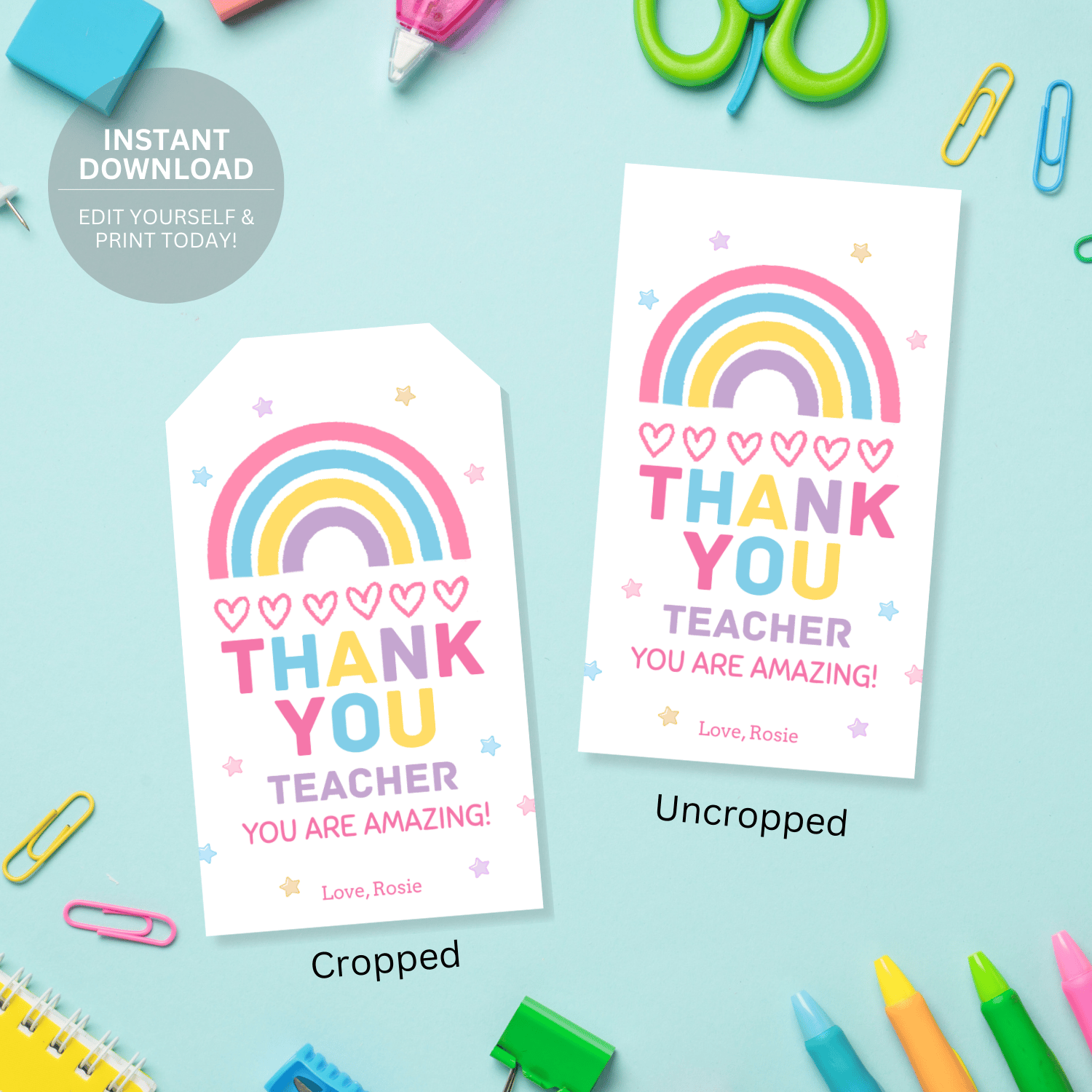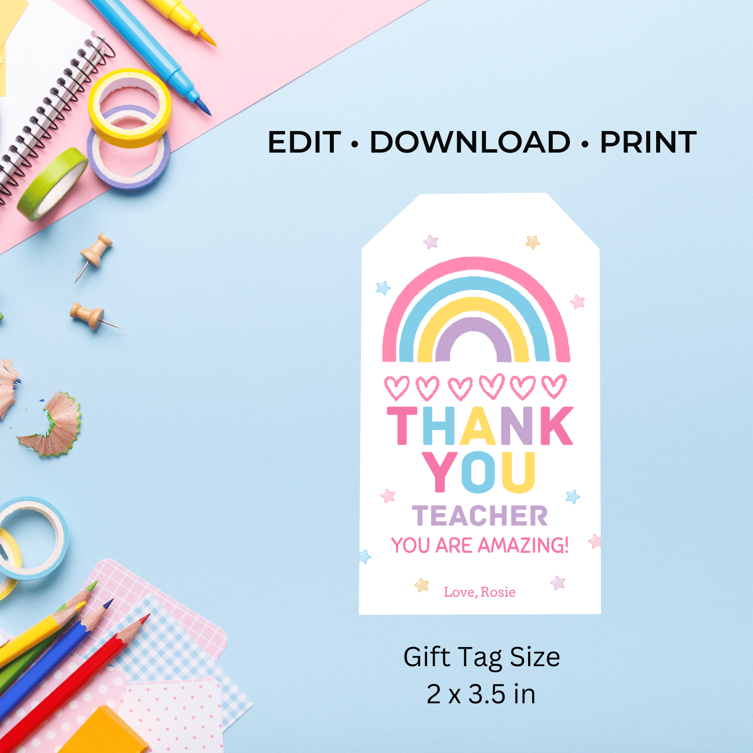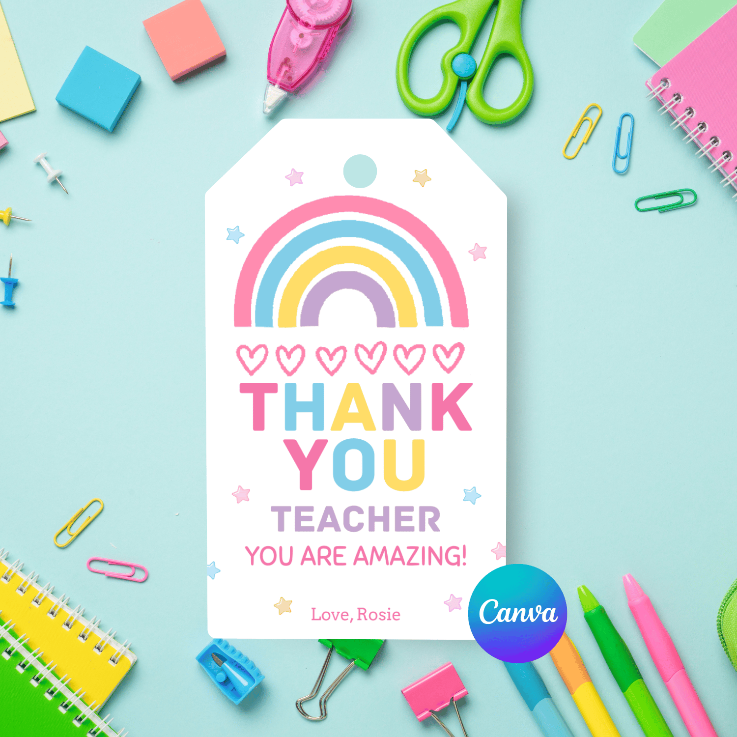 These boho rainbow teacher appreciation tags are a sweet and colorful addition to any gift. Designed to make saying “thank you” easy and stress-free, they’re perfect for parents, room moms, or anyone who wants a thoughtful teacher gift in minutes.