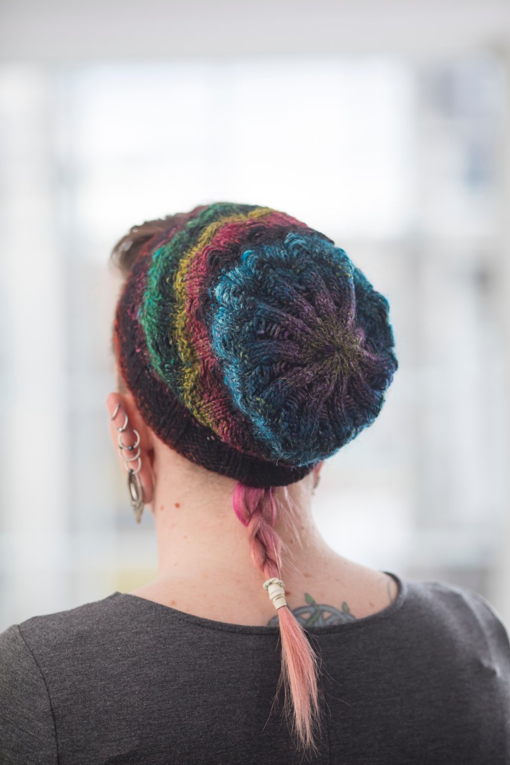 Up-Up-Down-Down-Left-Right-Left-Right B, A, Start; the ribbing on this hat goes all over the place! Great for a solid colour or a slow-burn gradient, any yarn that shows stitches well.