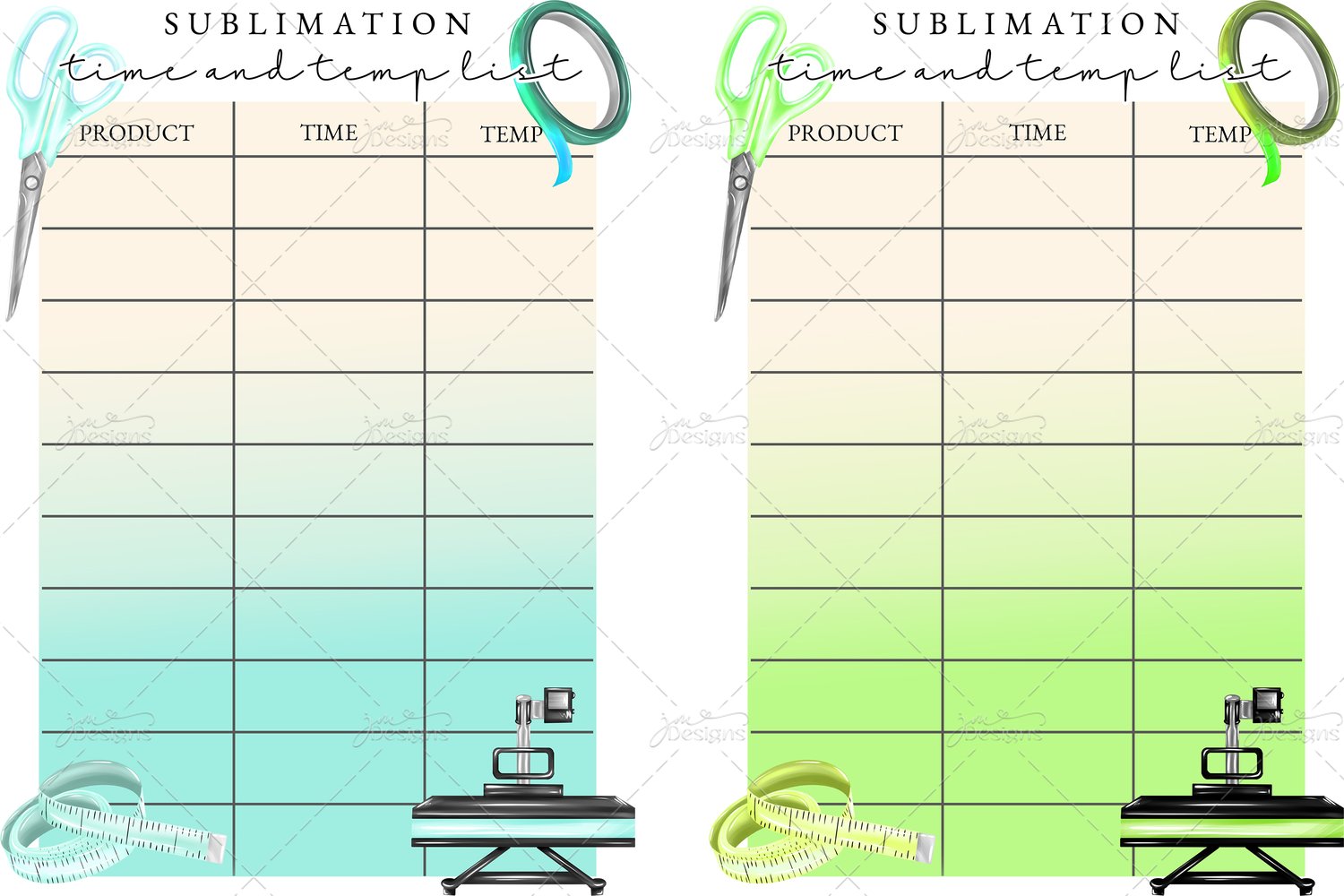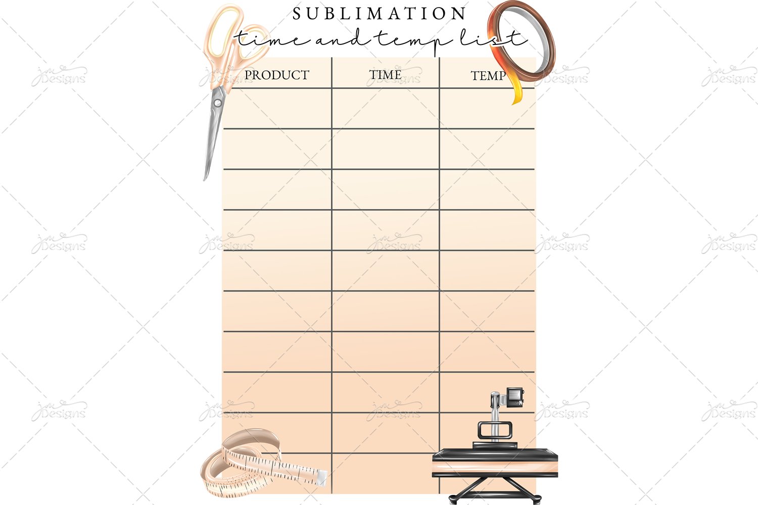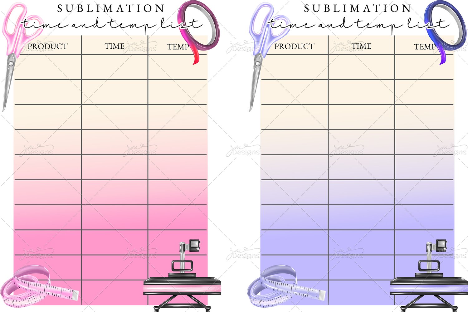 Sublimation Crafting Time & Temperature List Log | 5 PNGs!