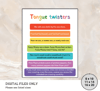 Tongue Twisters Printable Wall Art, English Rainbow Classroom Decor, English Classroom Trendy Wall Art, Fun Modern Classroom Decor Printable Instant Download