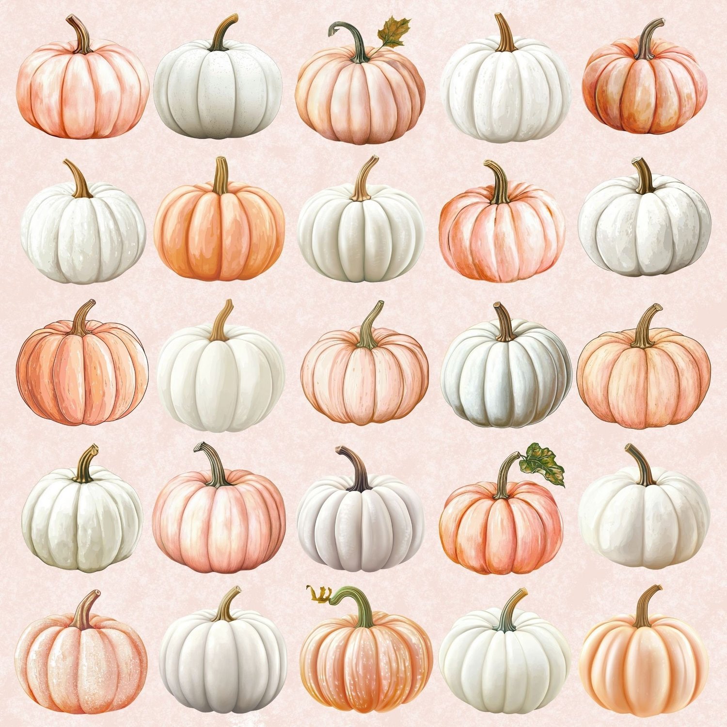 Our Pastel Pumpkin Clip Art Set is perfect for crafters, scrapbookers, digital creators, and anyone looking to add a soft, elegant touch to their designs with beautiful peach, white, and beige-pink tones.