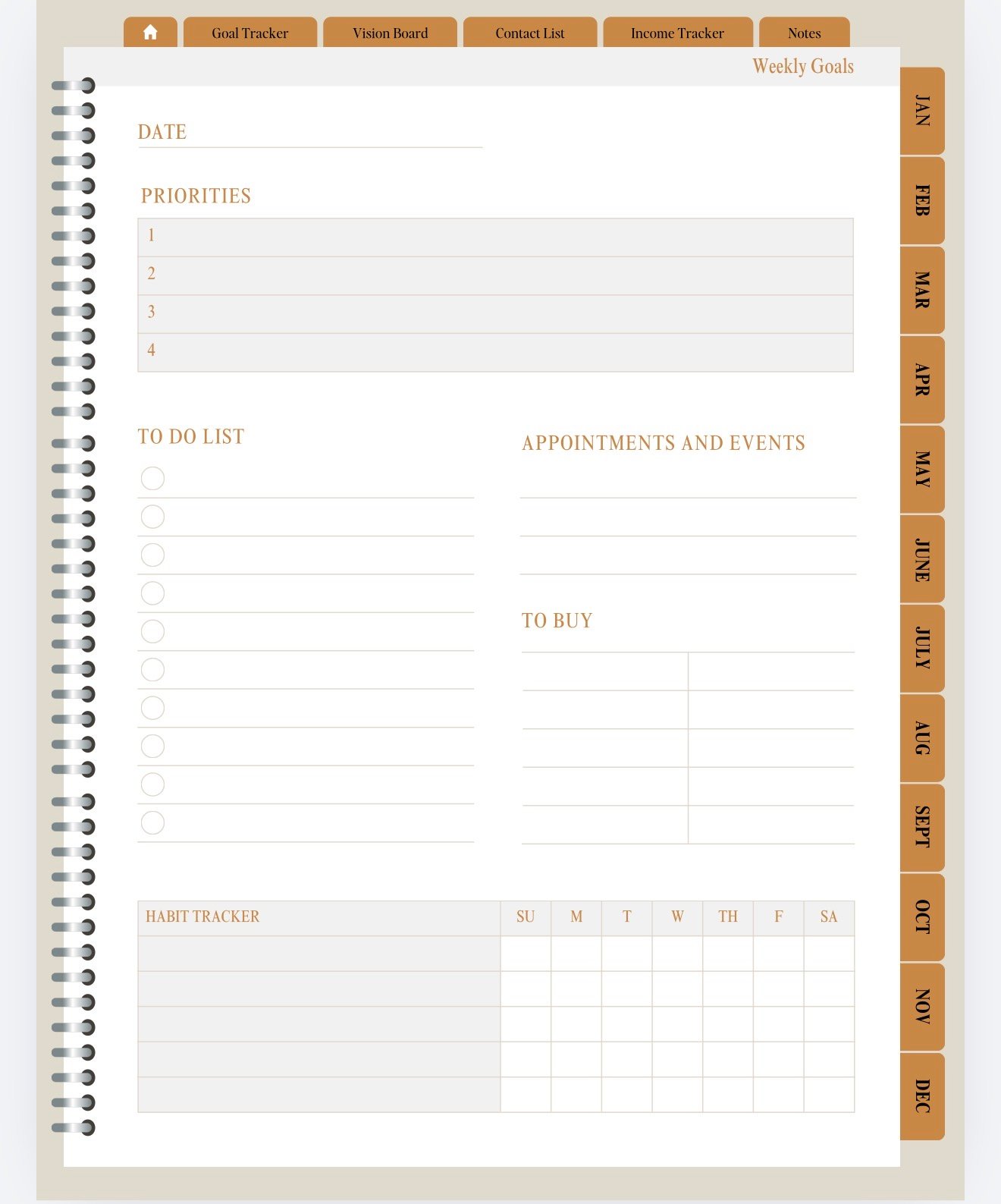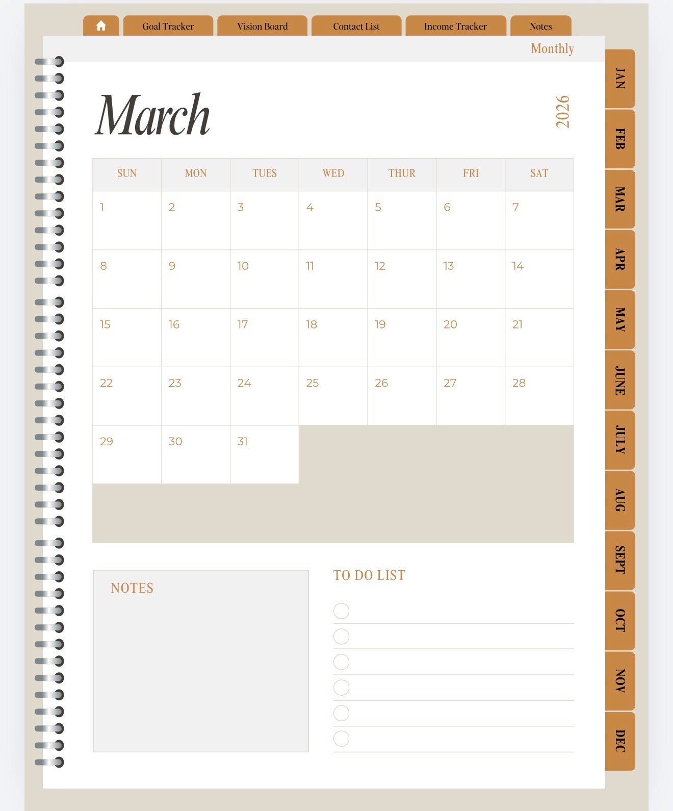 Each monthly tab and section tab is clickable. Simply tap any tab and it will instantly take you directly to that page. No endless scrolling — everything is organized for smooth, seamless digital planning.