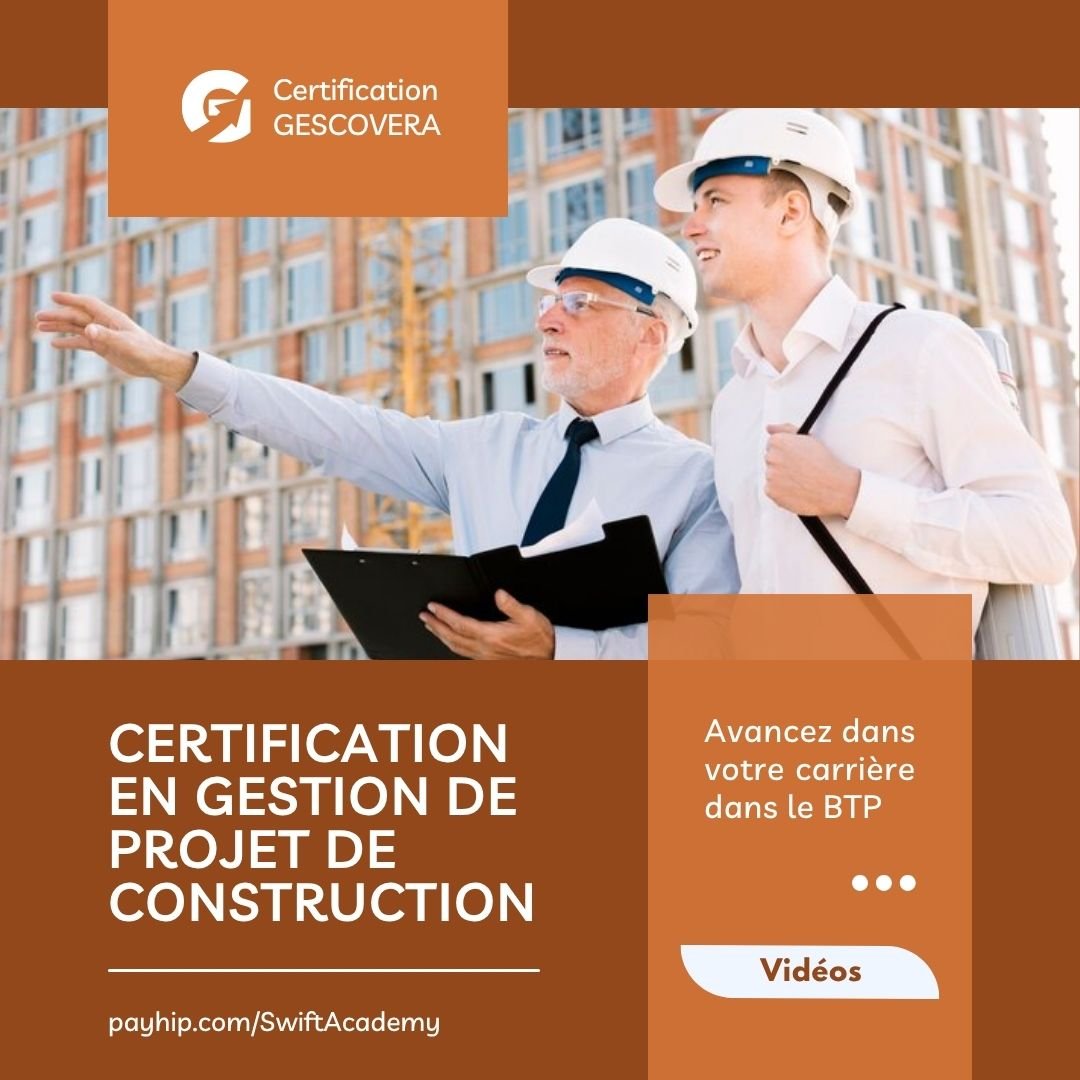 La formation GESCOVERA est destinée aux professionnels du BTP, aux ingénieurs en génie civil et aux responsables de projets qui souhaitent approfondir leurs compétences en gestion de projet de construction. Elle permet d’acquérir une maîtrise avancée des outils et des méthodologies du BTP, d’optimiser la planification, la gestion des ressources, des coûts et des délais, tout en développant des compétences en leadership pour mieux coordonner les équipes et valoriser son profil professionnel afin de renforcer son impact et ses opportunités de carrière.