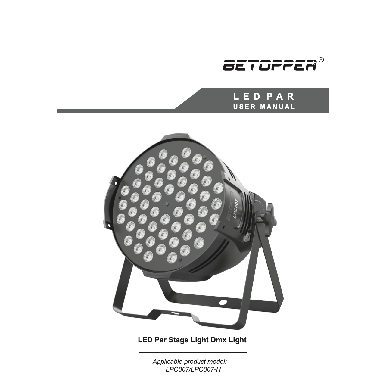 Librería para Freestyler DMX del Par Led "LPC007" y "LPC007-H" de Betopper (frente de chapa o acrílico).