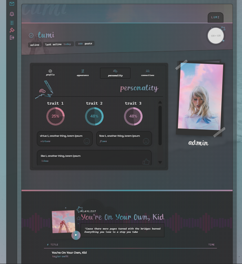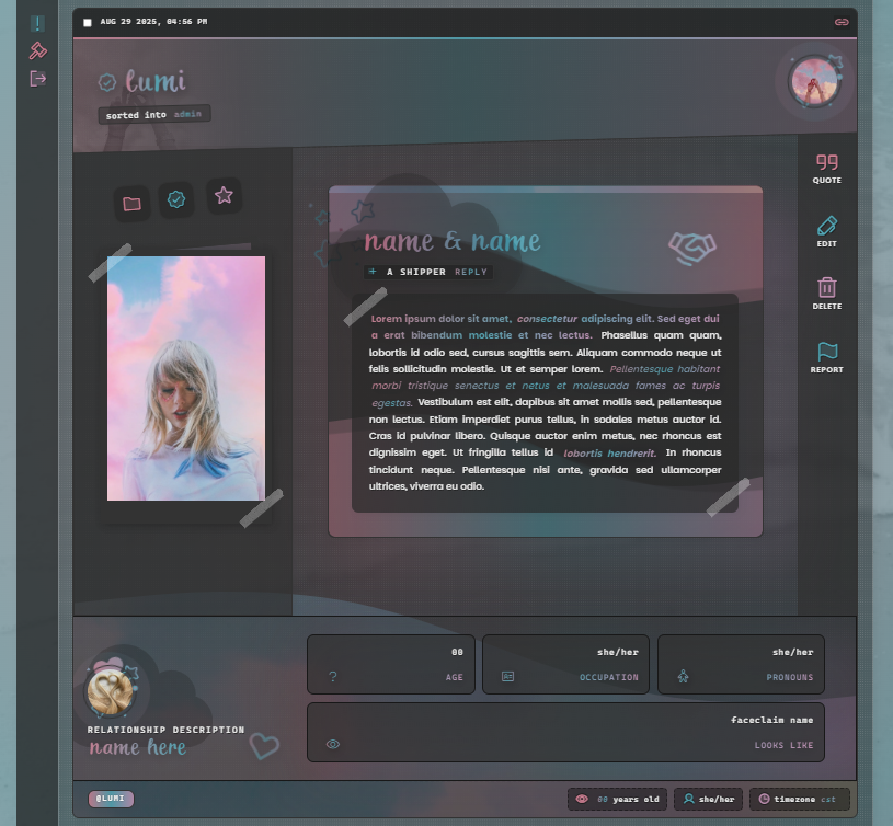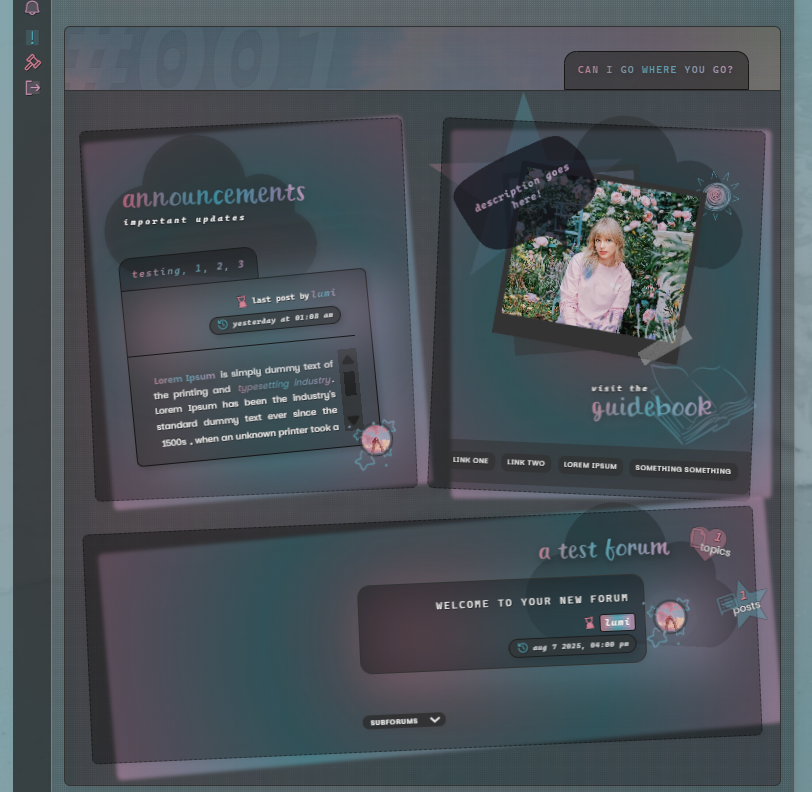 A scrapbook themed responsive Jcink skin. Comes with a zip file including the skin's XML sheet, a PDF installation guide, and a json file for uploading profile fields.