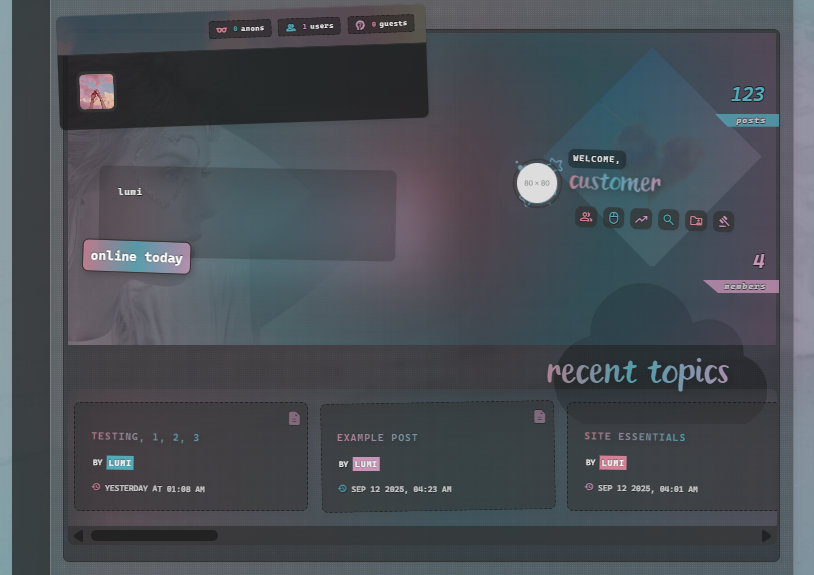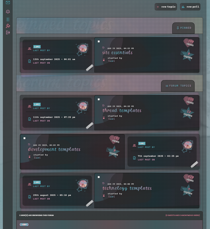 - All HTML templates (forum rows, topic rows, post rows, board stats, member list, main profile, etc)