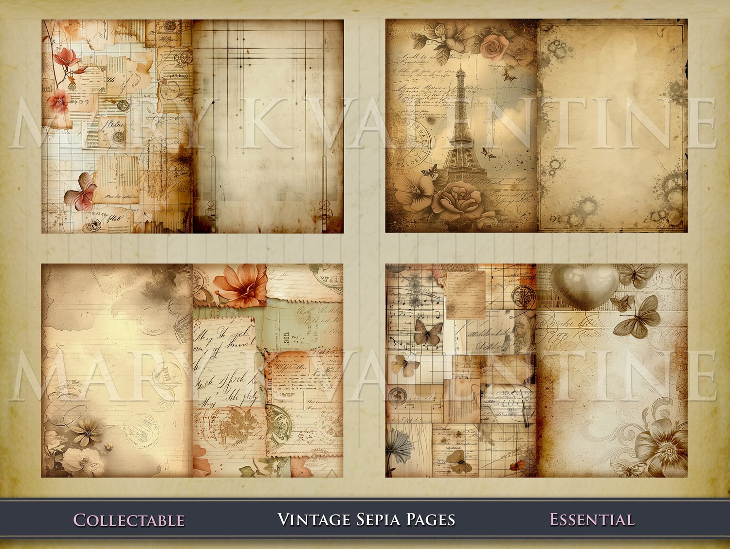 Vintage Sepia Pages Essential Printable Junk Journal Papers