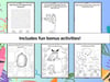 - Fun bonus activities like a maze, word search, and “finish the drawing” page