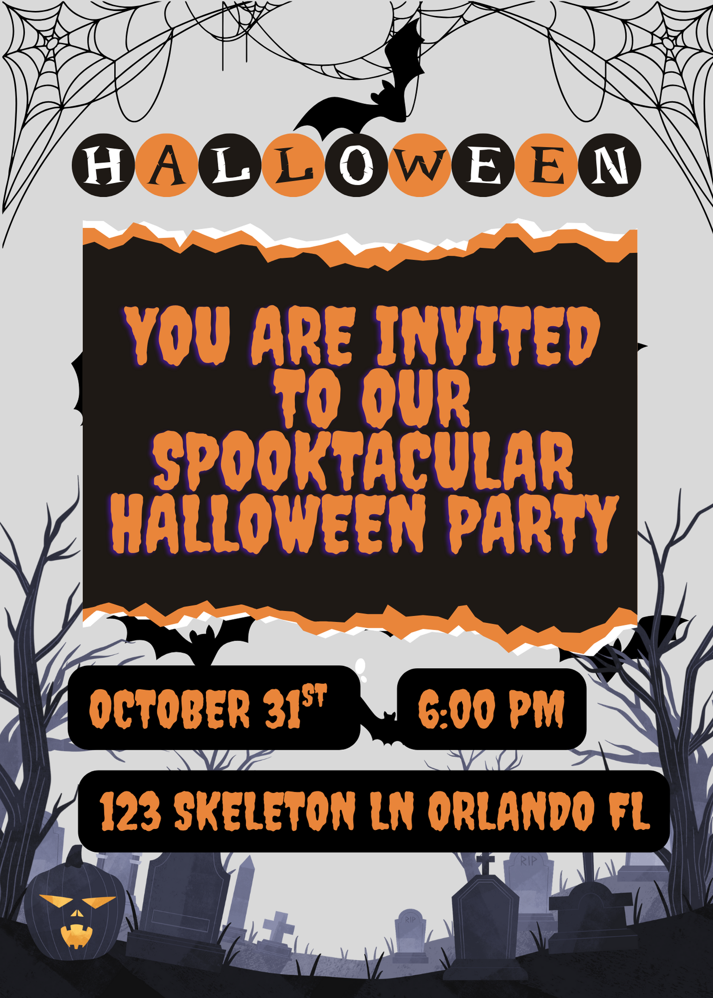 Stop sending boring party invites! This 5x7'' digital invitation sets the perfect creepy tone for your Halloween bash! Designed with ghoulish graphics and a striking color palette, it's sure to grab your guest's attention and guarantee a packed house.