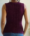 A collared short top with a center cable panel worked from the bottom up. The shaping starts immediately after the garter hem to give a slight flare.