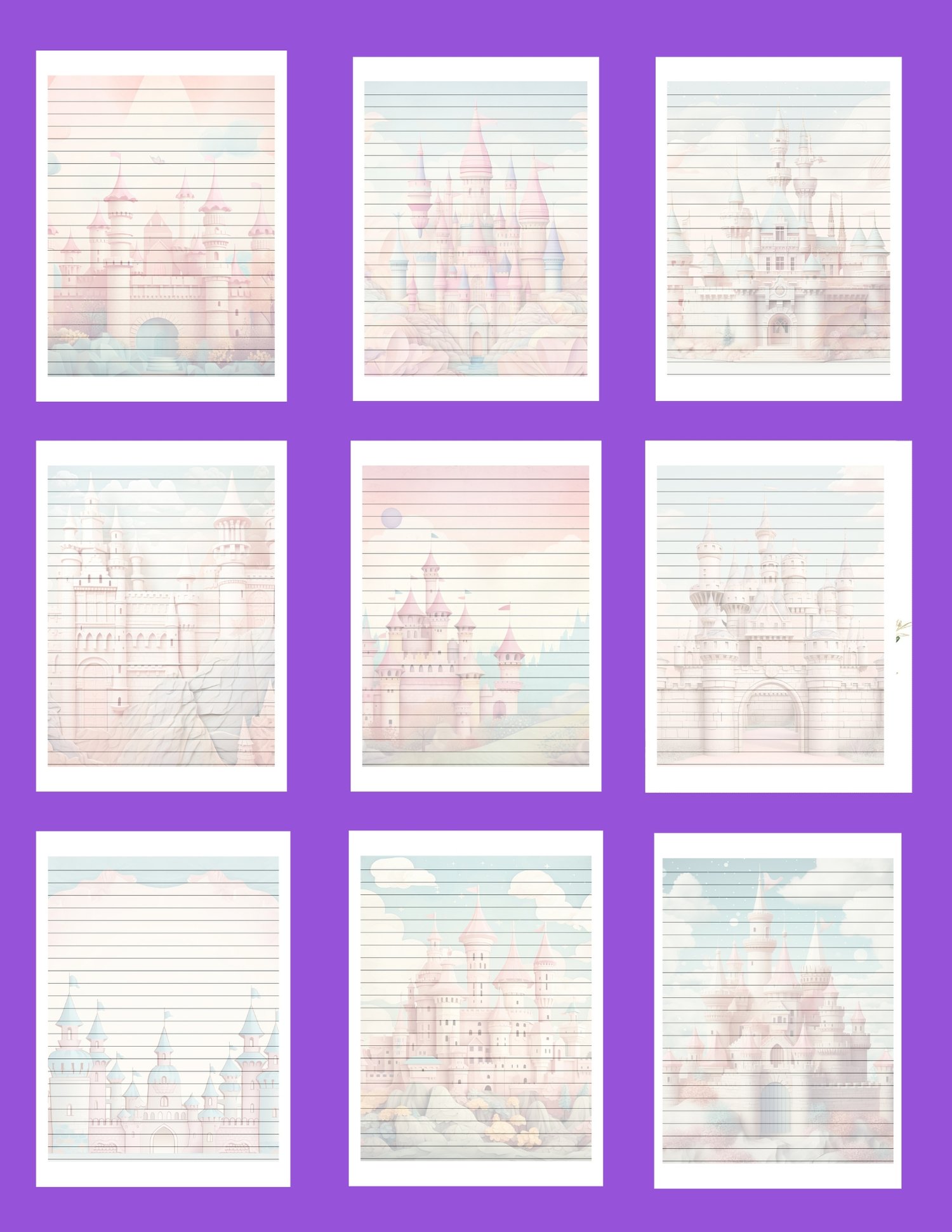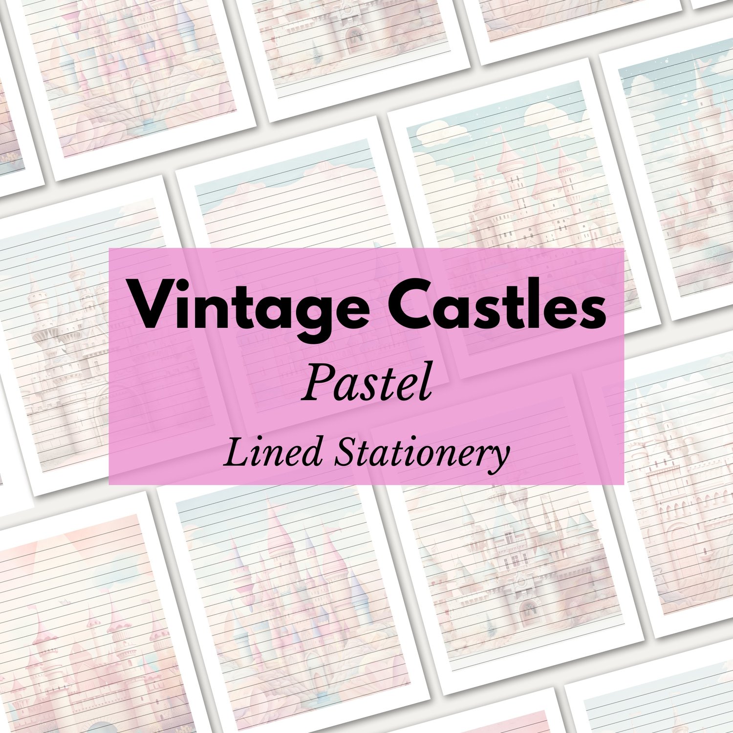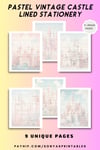 Capture the essence of vintage castles with our Printable Vintage Lined Note Paper Today! You'll recieve 9 unique sheets of Pastel Vintage Castle Lined Penpal Paper.