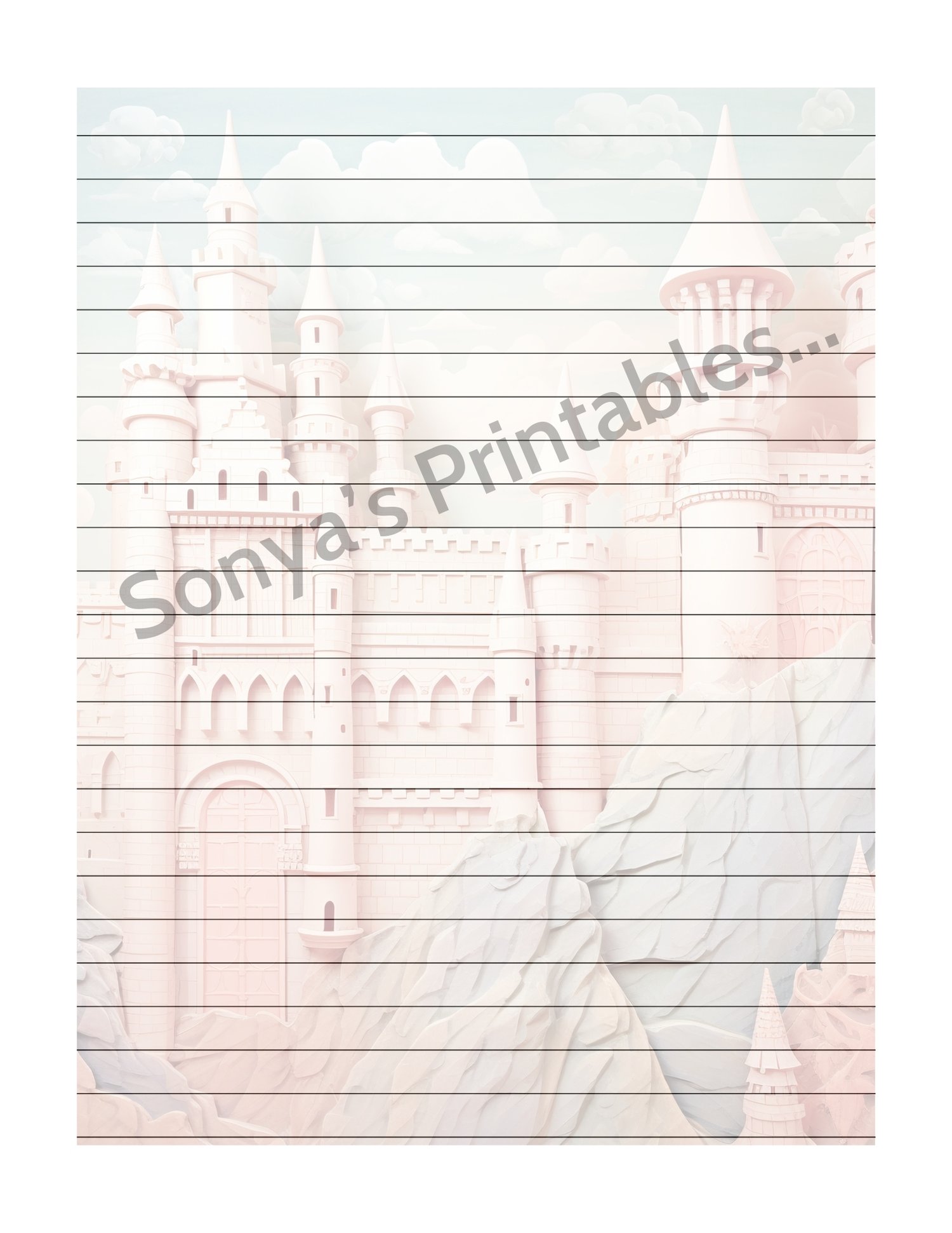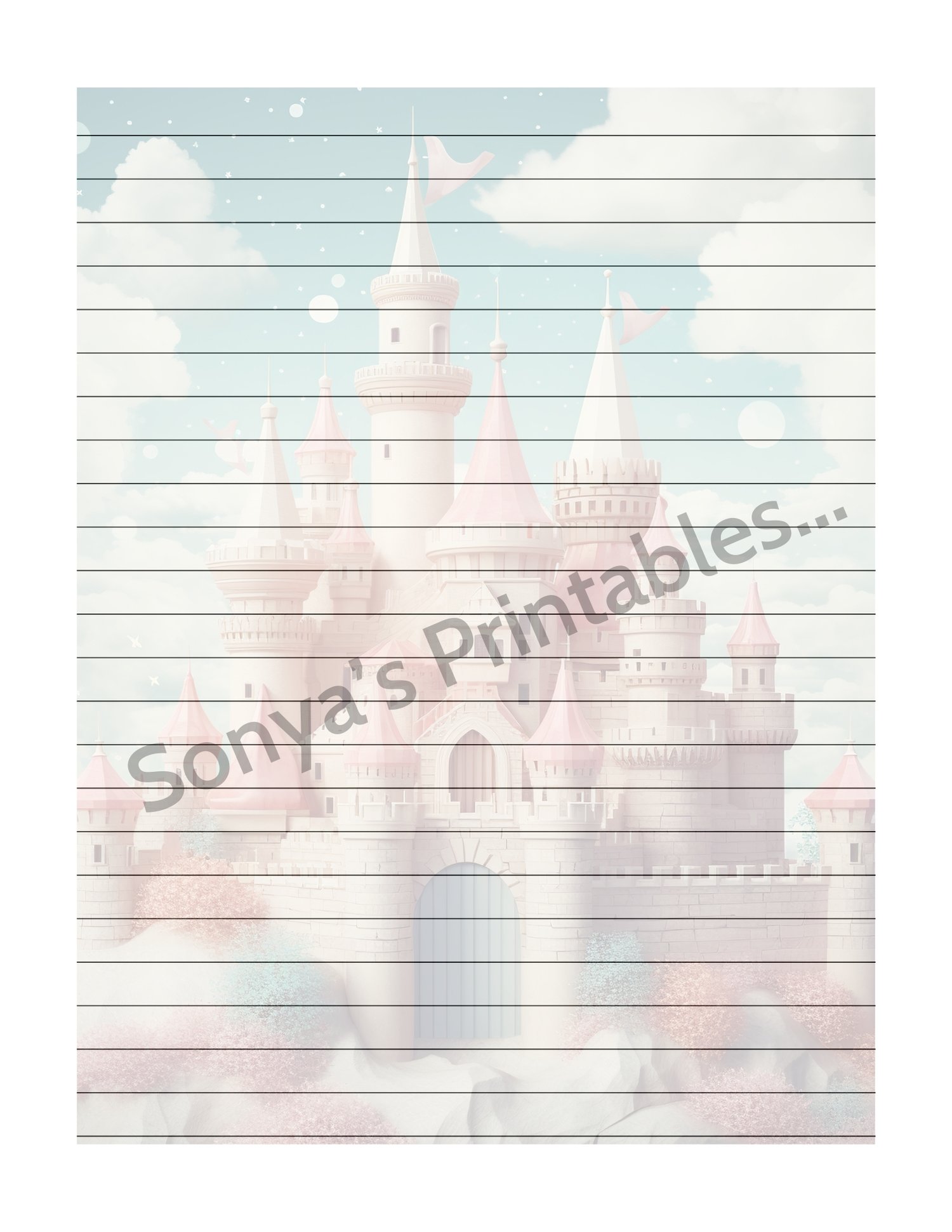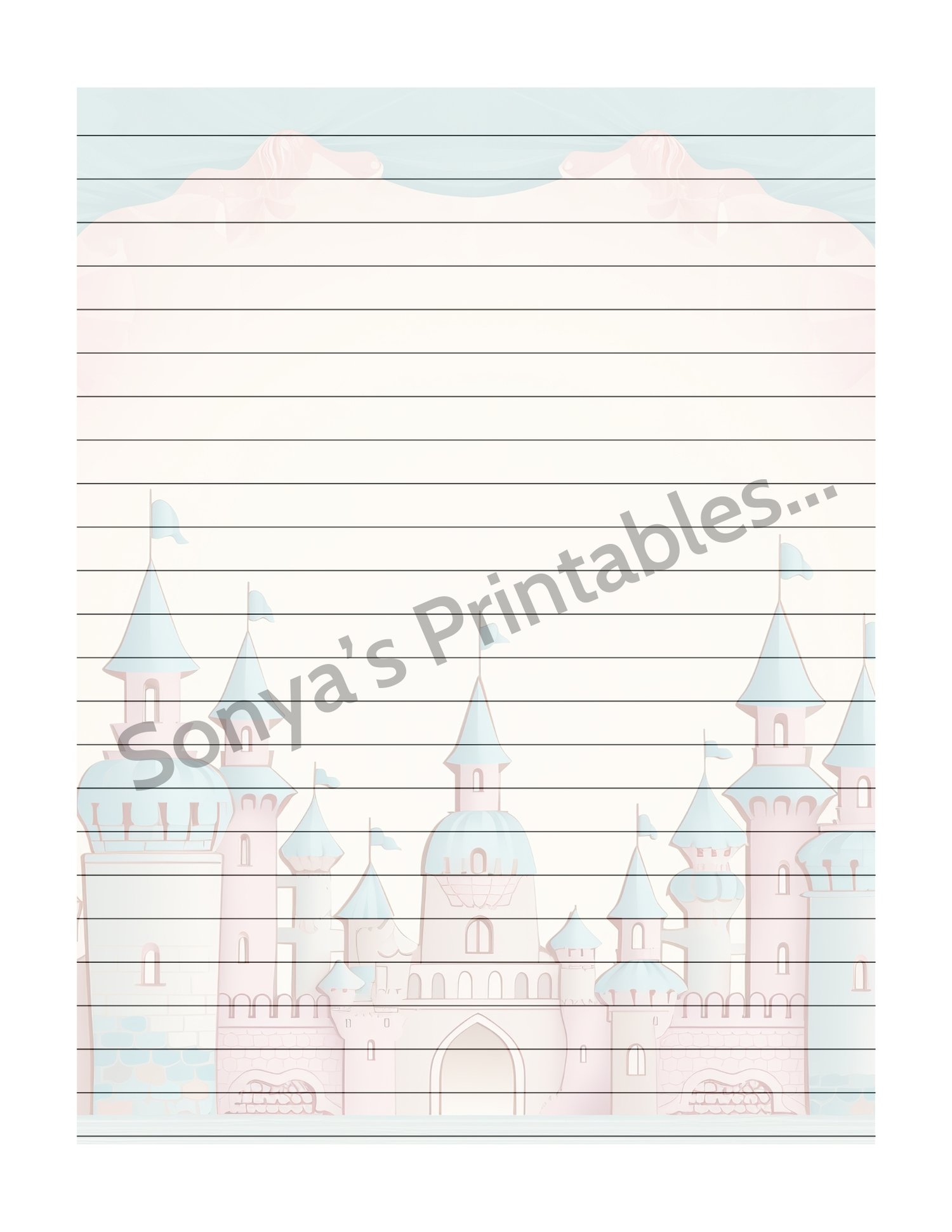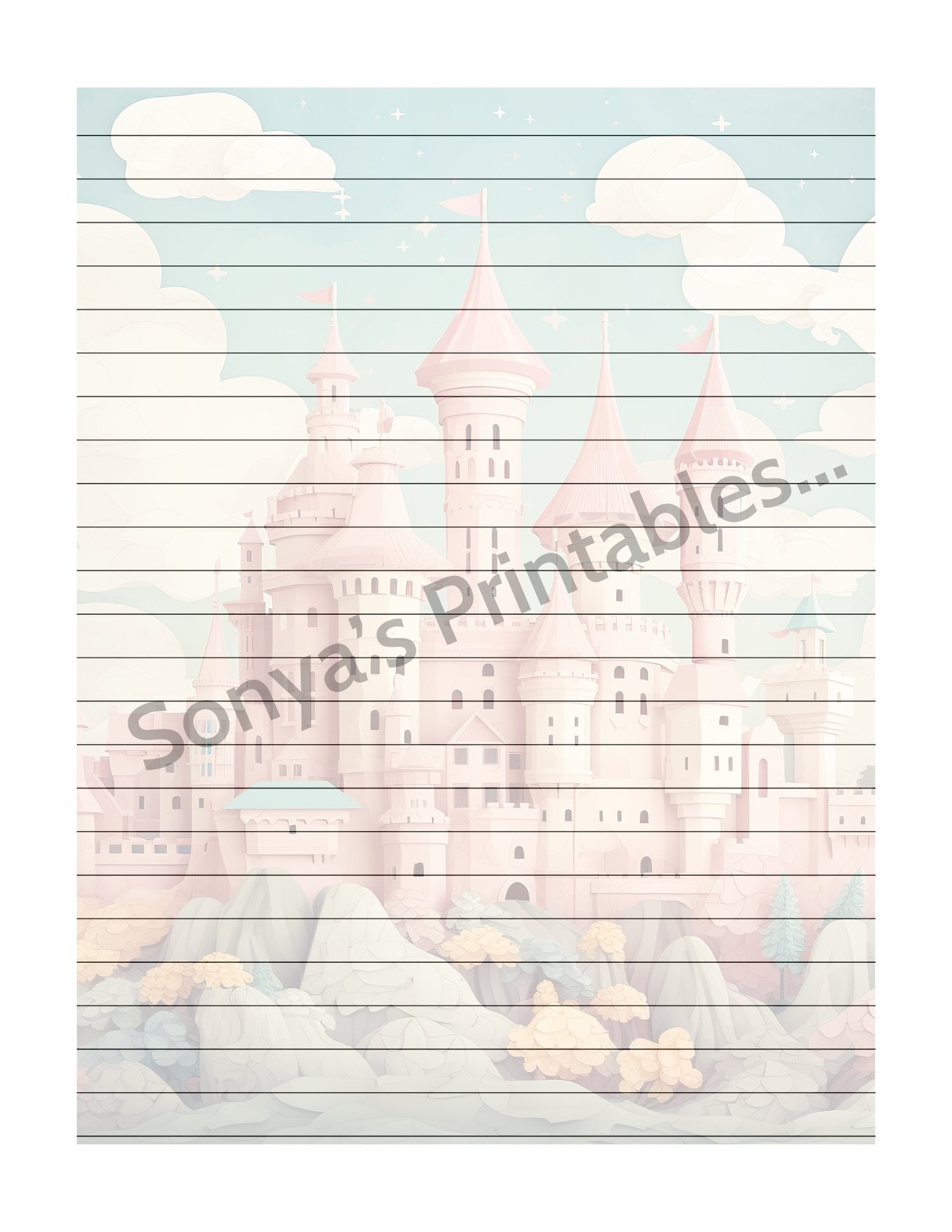 Pastel Vintage Castle Lined Stationery | Printable Castle Lined Writing Paper | Vintage Castle Lined Note Paper | Pastel Castle Lined Penpal Paper