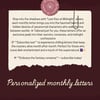 Looking for a little monthly magic? How about receiving personalized letters from the characters of Last Kiss at Midnight? The very first letter is a generalized letter to get to know you, but after receiving your response, the letters become more personal so no two are alike!