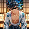 日本の正月をテーマに、着物を着用している男性を、キャラクターごとにお任せ作成しました。男らしいキャラクターの魅力を思い切って表現しました。