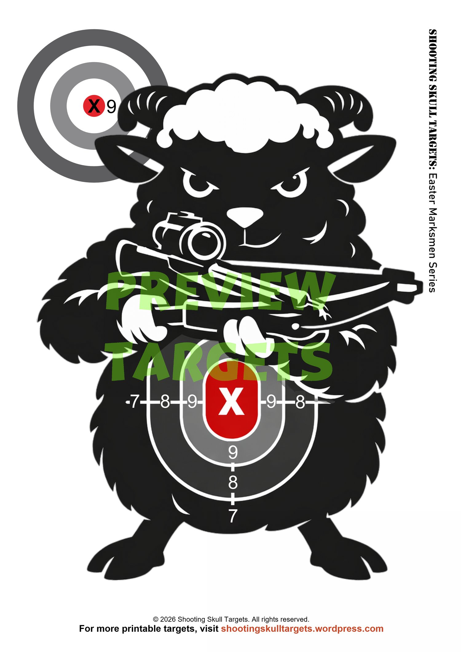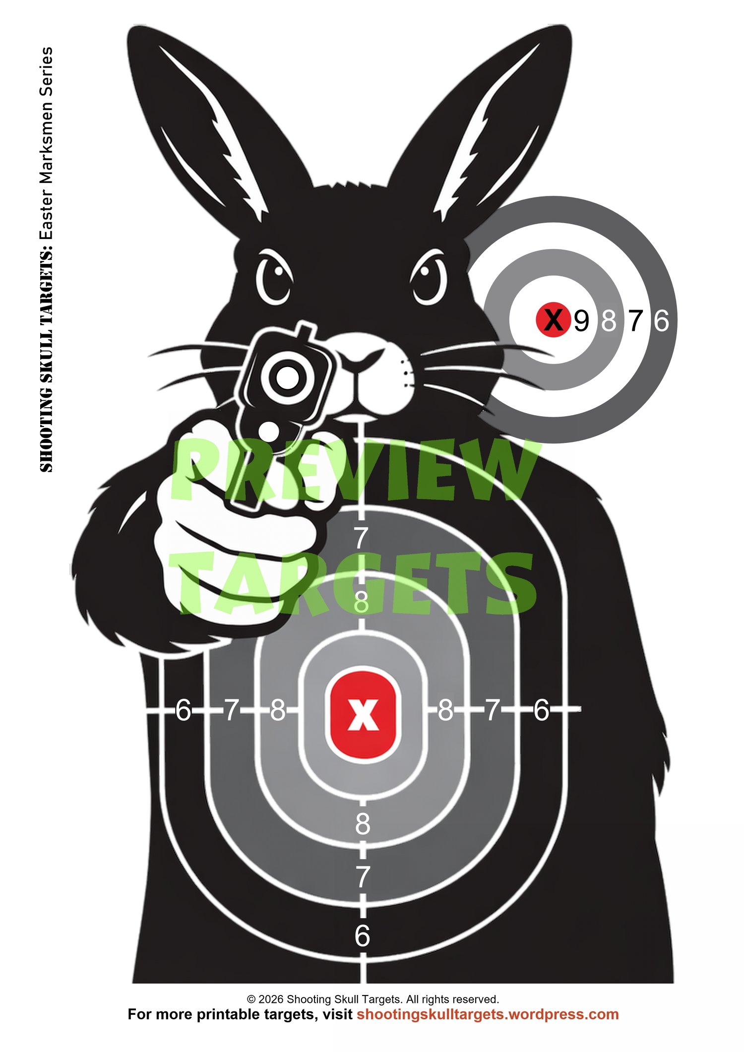Whether you're plinking in the garden or training at the range, the Easter Marksmen Series delivers bold visuals, clean scoring, and a twisted holiday vibe. Designed by Shooting Skull Targets for shooters who want impact with style.