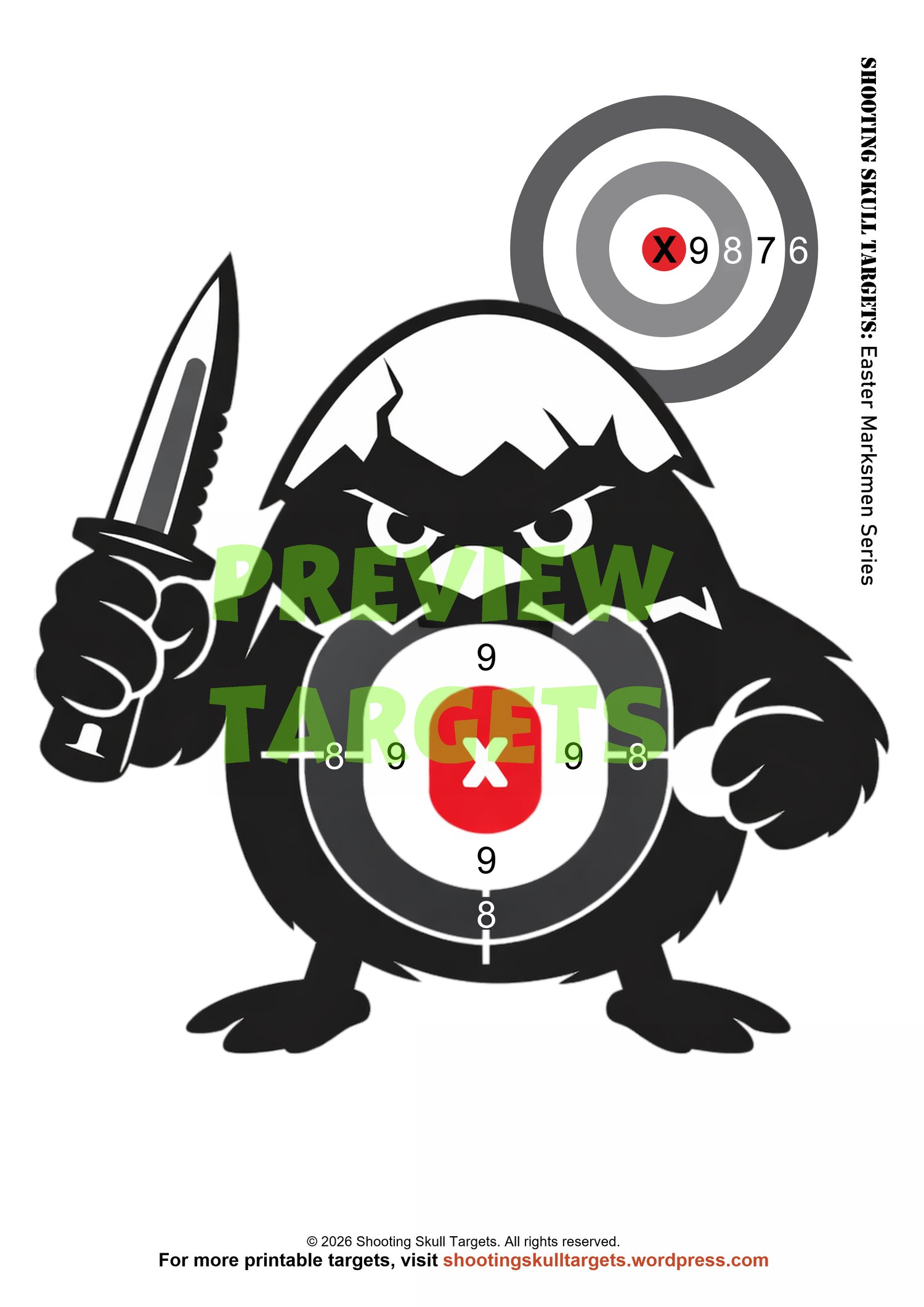 Add twisted seasonal flair to your shooting sessions with the Easter Marksmen Series by Shooting Skull Targets. This bold collection of printable A4 silhouette targets features five armed Easter characters β perfect for airguns, BB guns, and airsoft.
