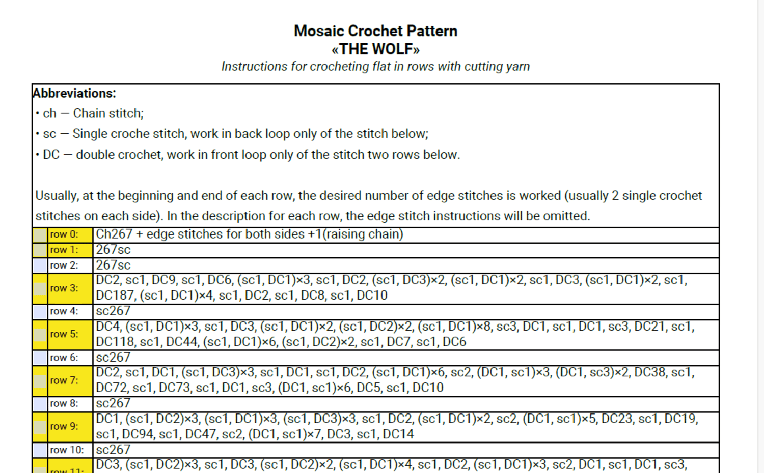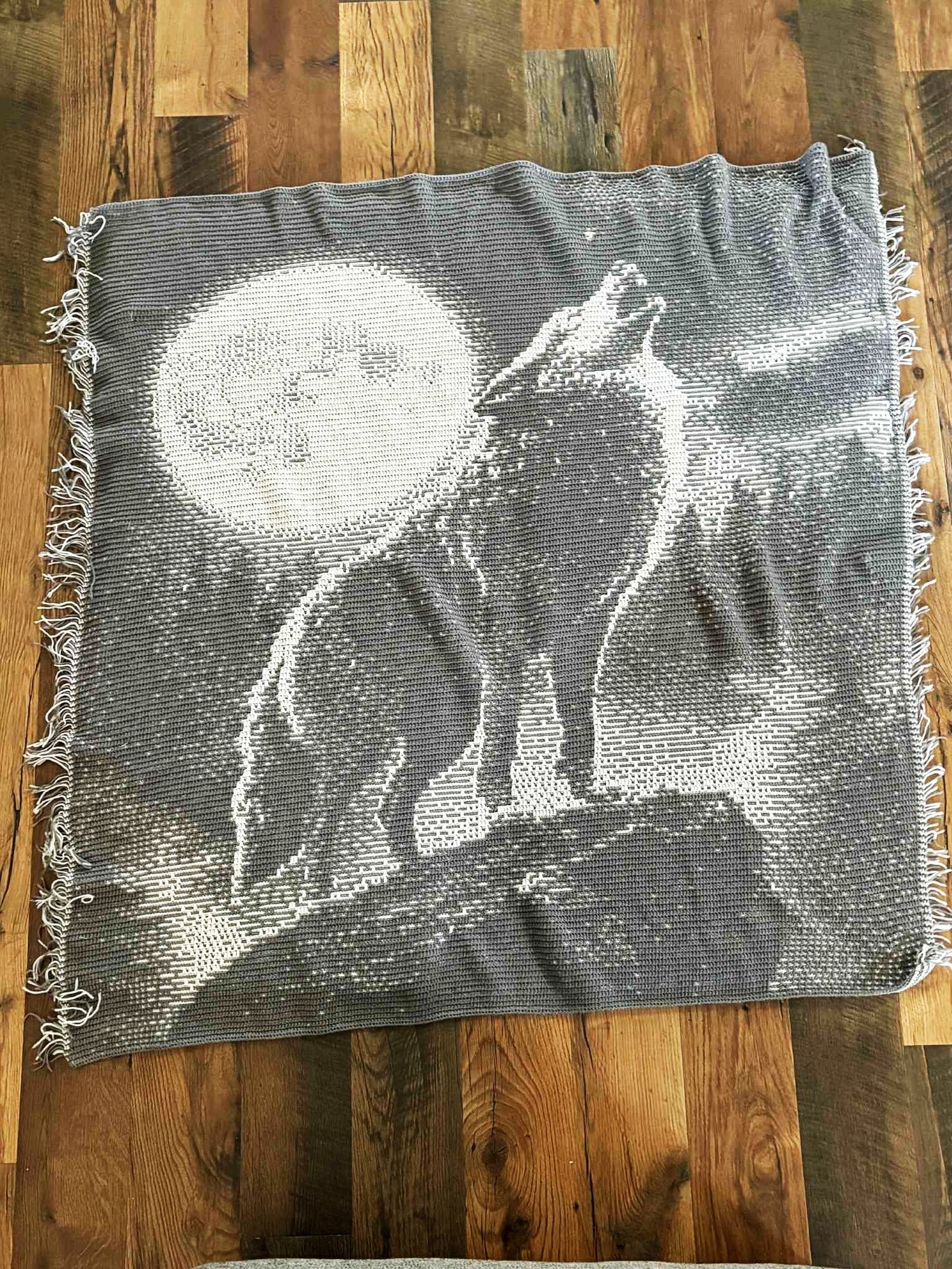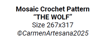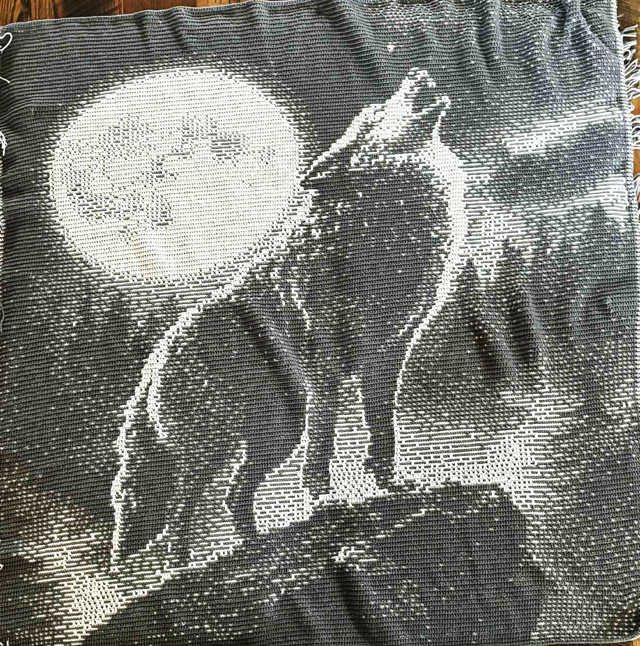 Overlay Mosaic Crochet Afghan, THE WOLF, written pattern row by row, Big Chart with Xs, PDF files